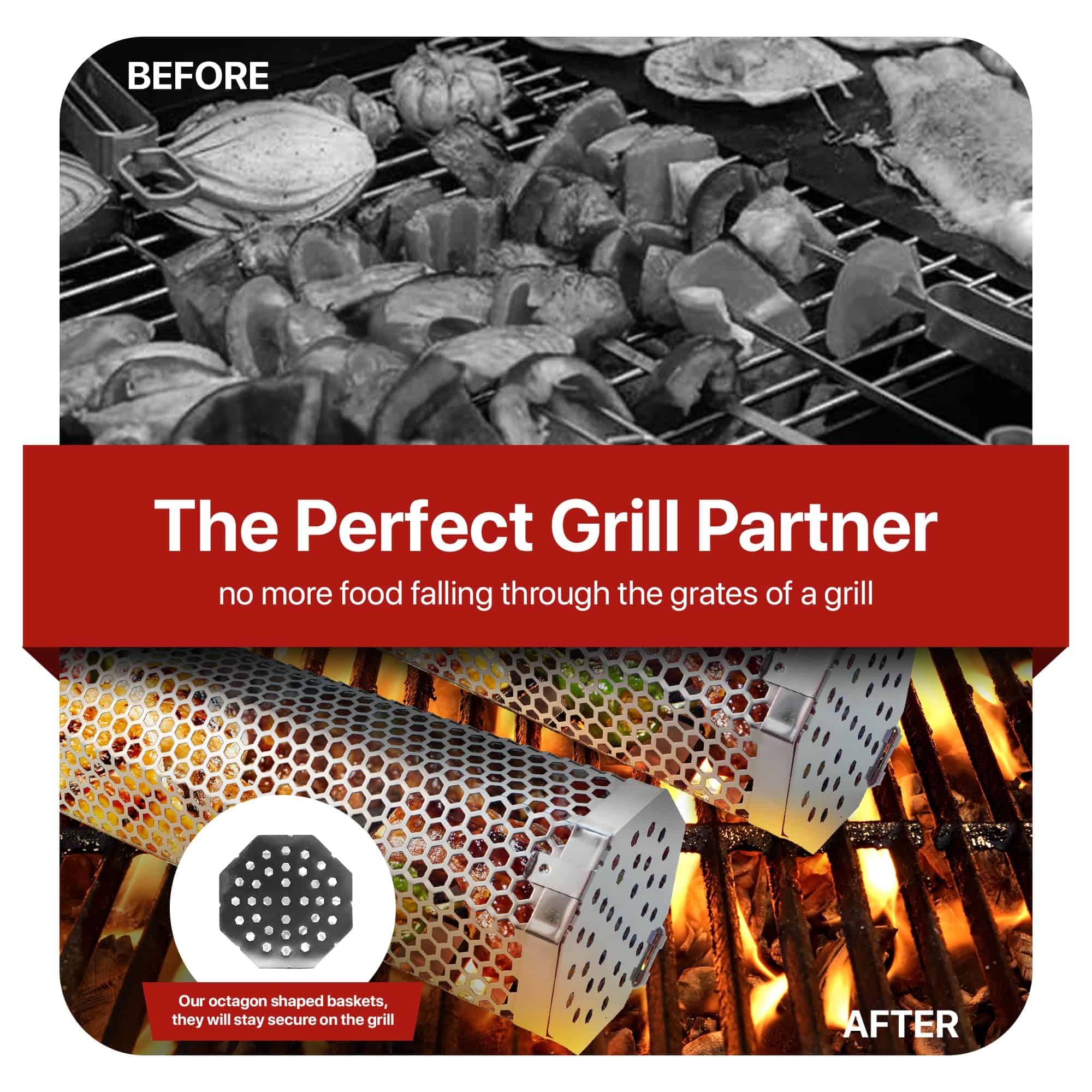 5. Uso Versátil Ideal para asar verduras, mariscos, carnes cortadas en dados y más perfecto para BBQs en el patio trasero, viajes de camping o tailgates.
