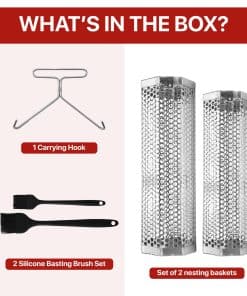 2. Diseño Compacto Apilable El juego de dos canastas para parrilla se apilan para un almacenamiento fácil y que ahorra espacio, lo que las hace ideales para cocinas, RVs o equipamiento de acampada.