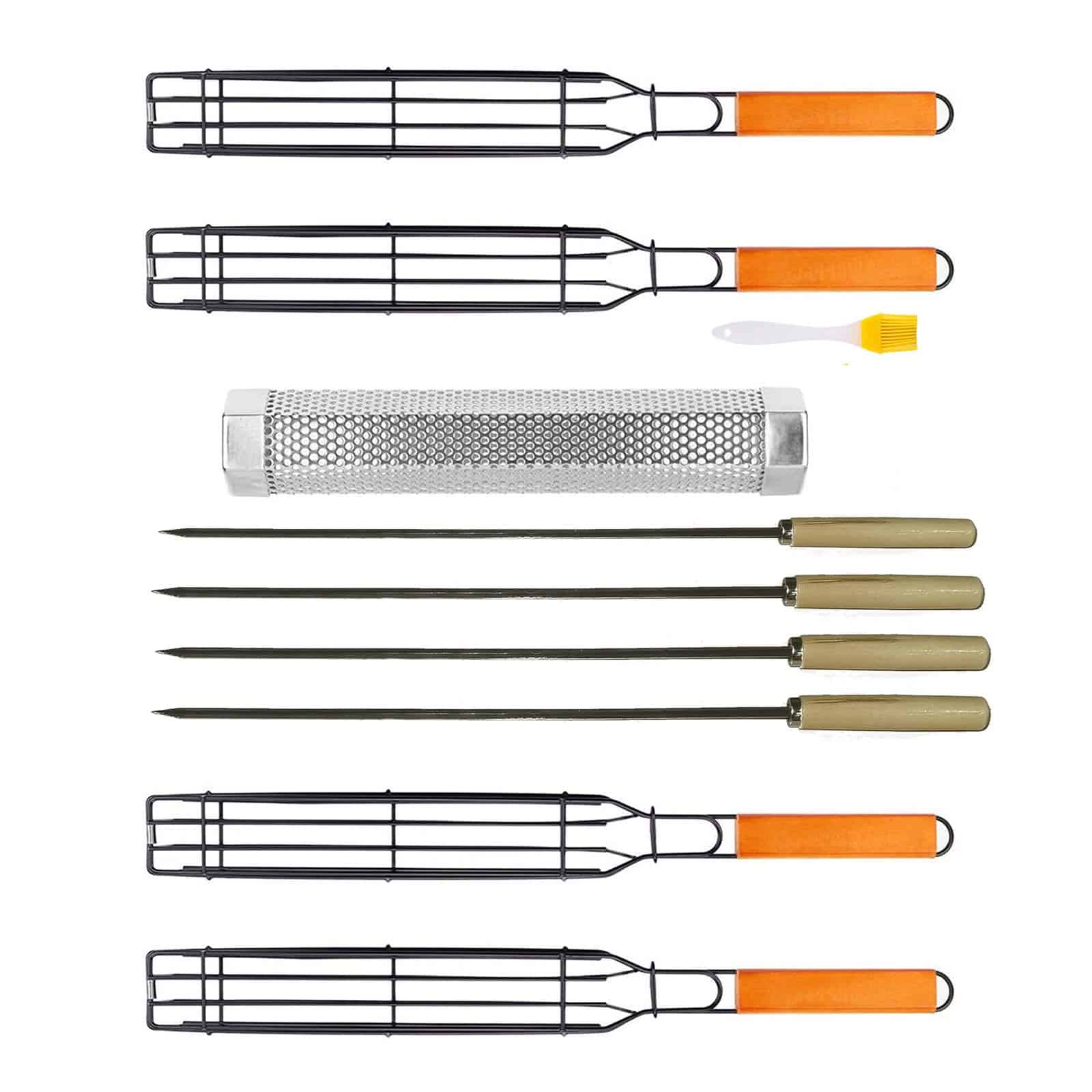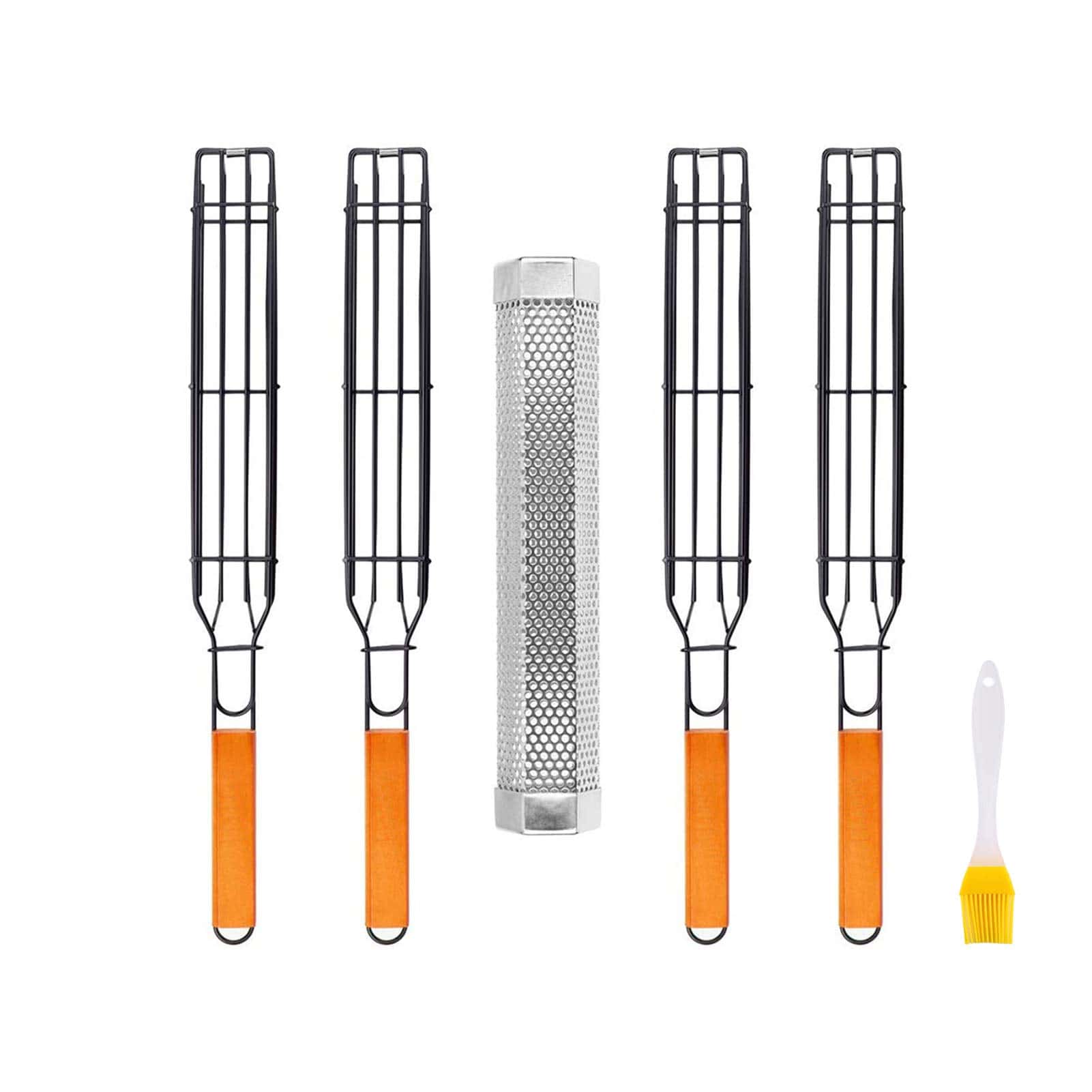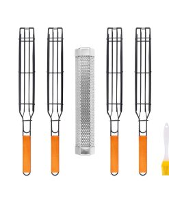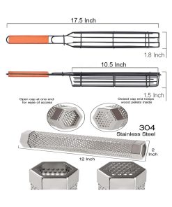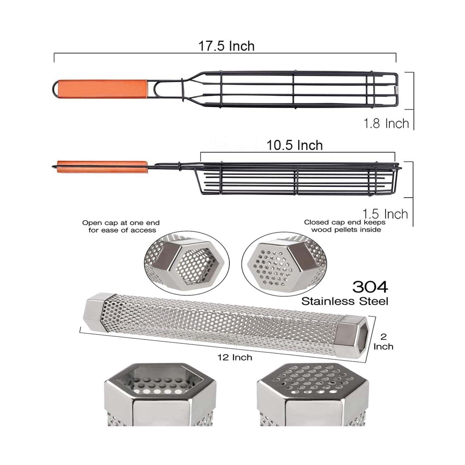 ¡El Set de 4 Canastas para Asar Brochetas viene con un Tubo de Humo de Pellets de Acero Inoxidable de Grado Alimenticio 304!