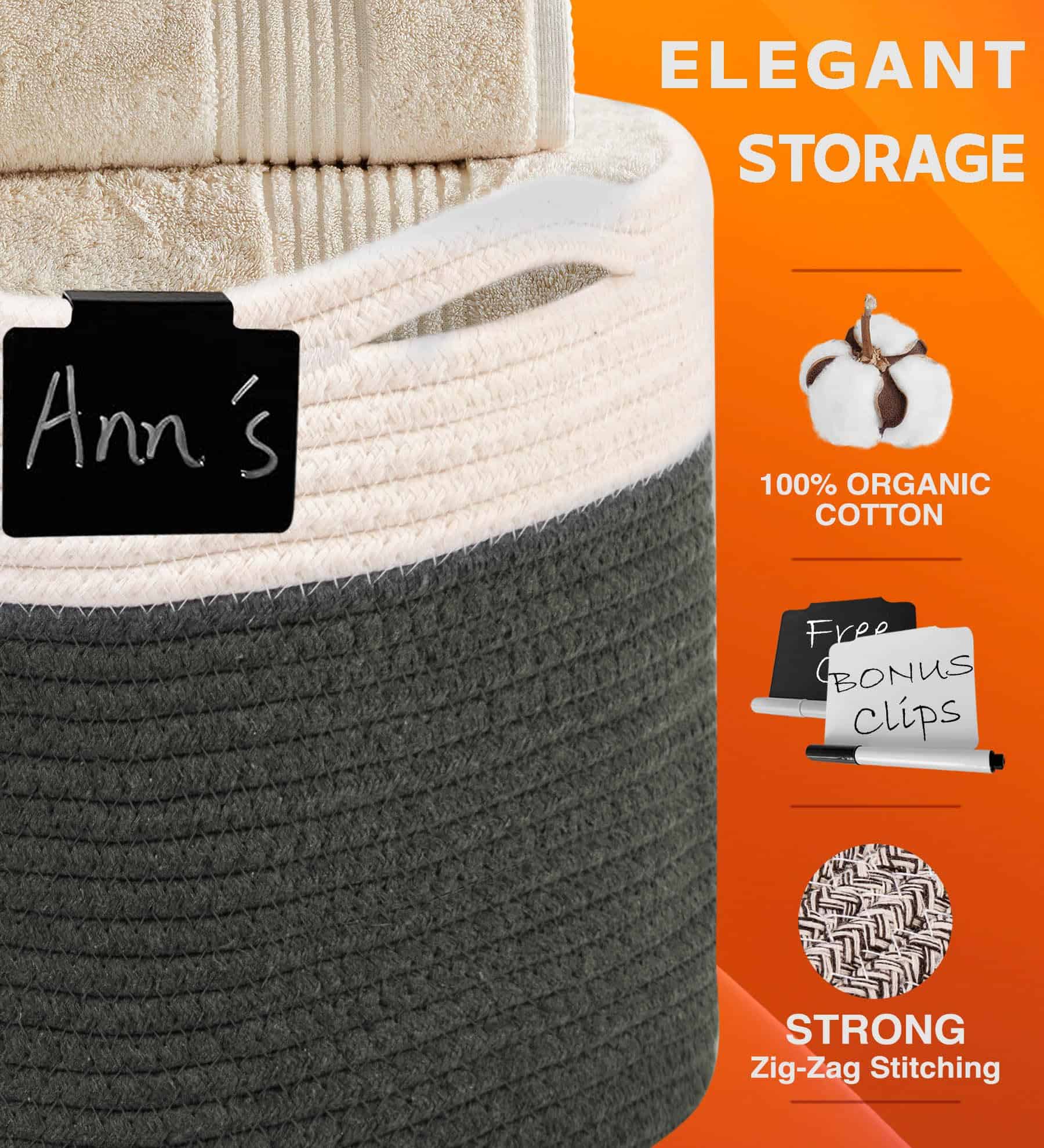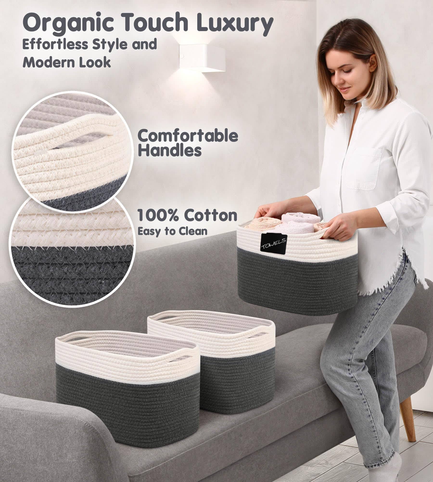 Canastos de Cuerda de Algodón CHAT BLANC para -Blanco Crema