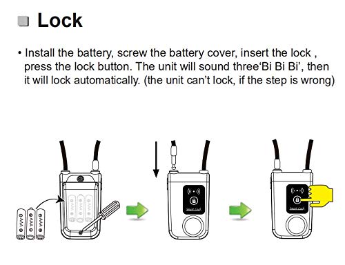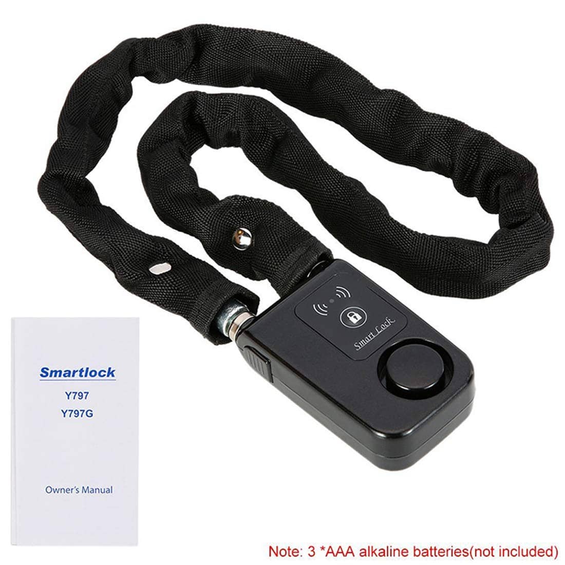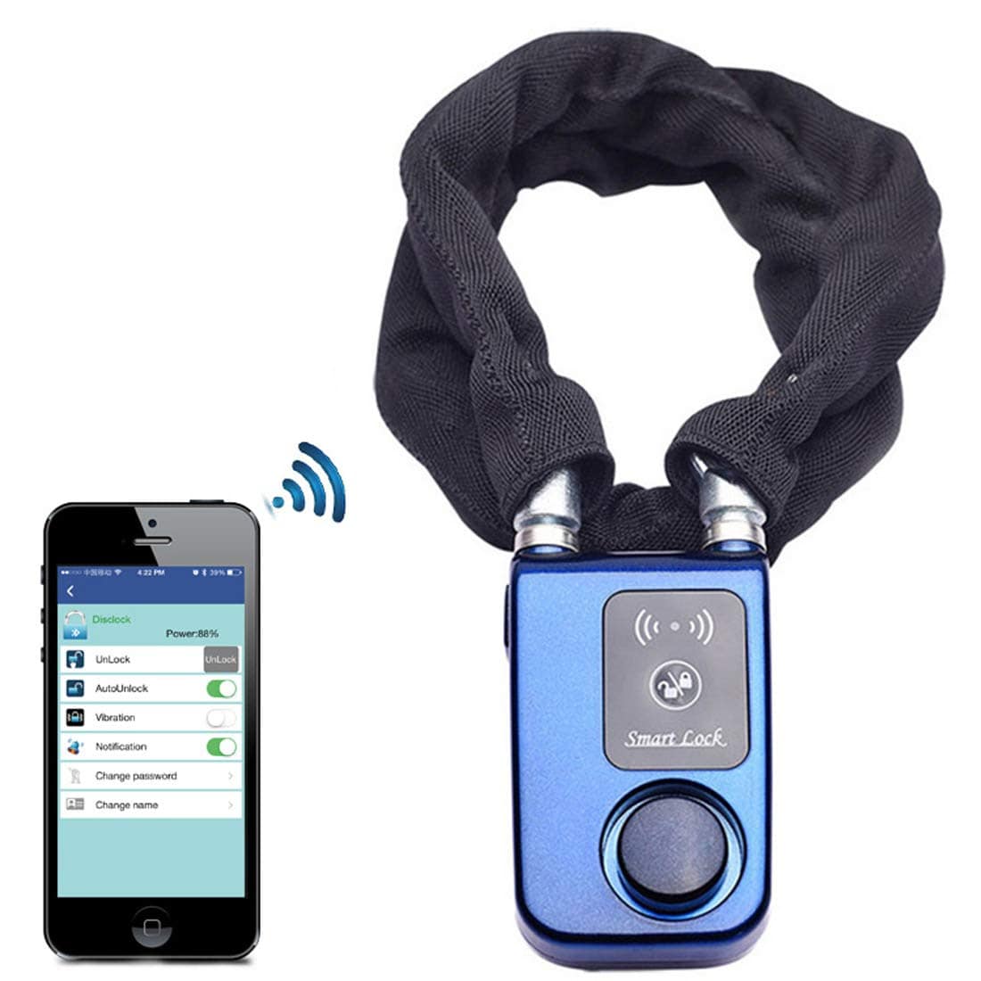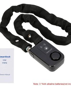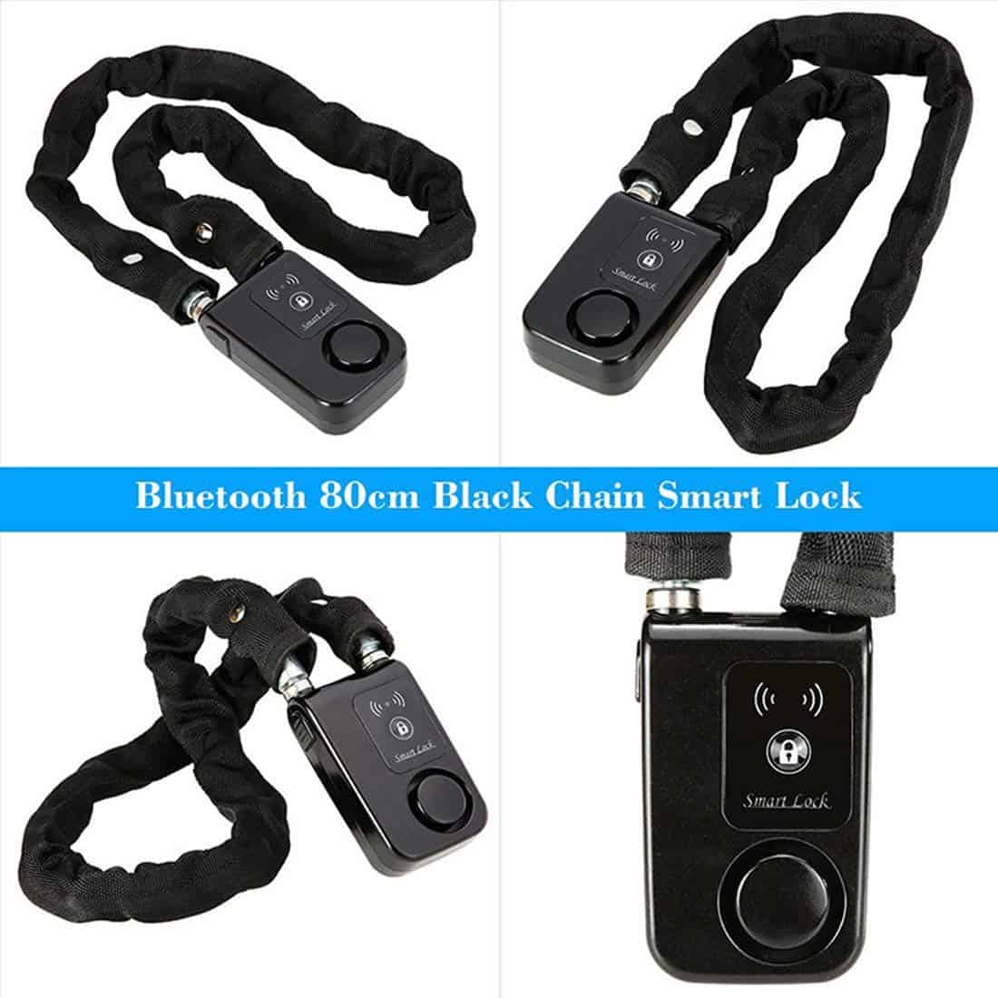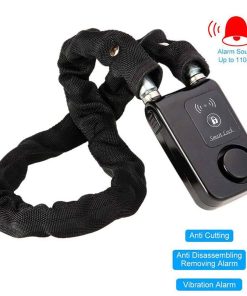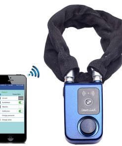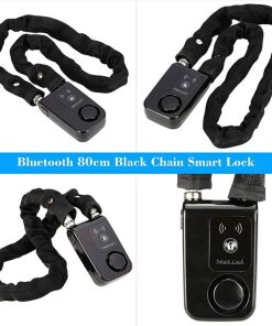 La alarma de vibración o corte activa la alarma Resistente al agua IP55 Llave compartida con familiares/amigos Controlado por APP móvil—Solebe Compatible con iOS 7.0 y Android 6.0 o superior Versión de Bluetooth: 4.0 Alarma antirrobo de 115dB Contraseña se puede restablecer Material: Cobre + ABS + Acero Longitud de la cadena: 80cm (40/100cm también disponibles) Energía: 3 pilas alcalinas AAA (no incluidas) Peso del producto: 720g (Cadena)