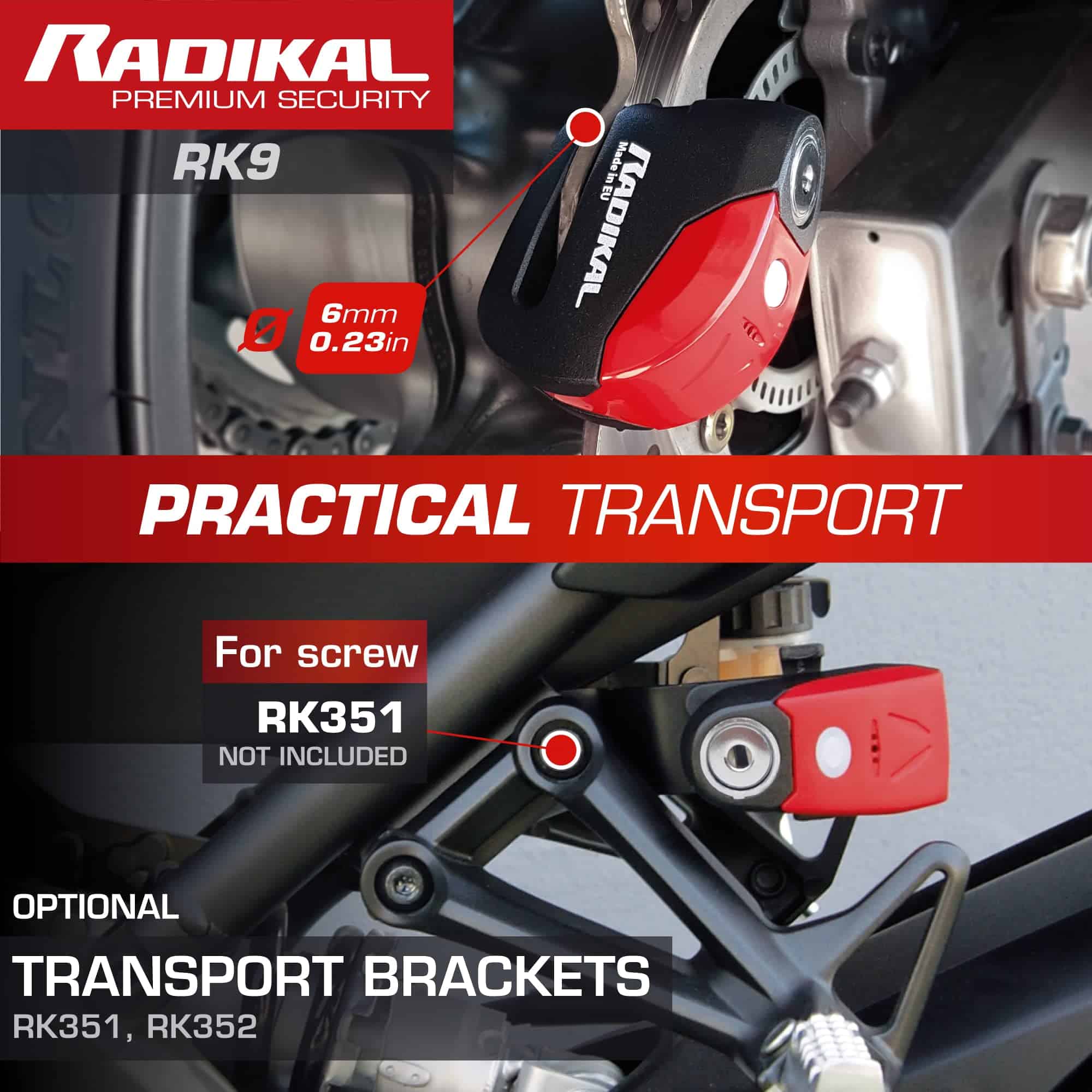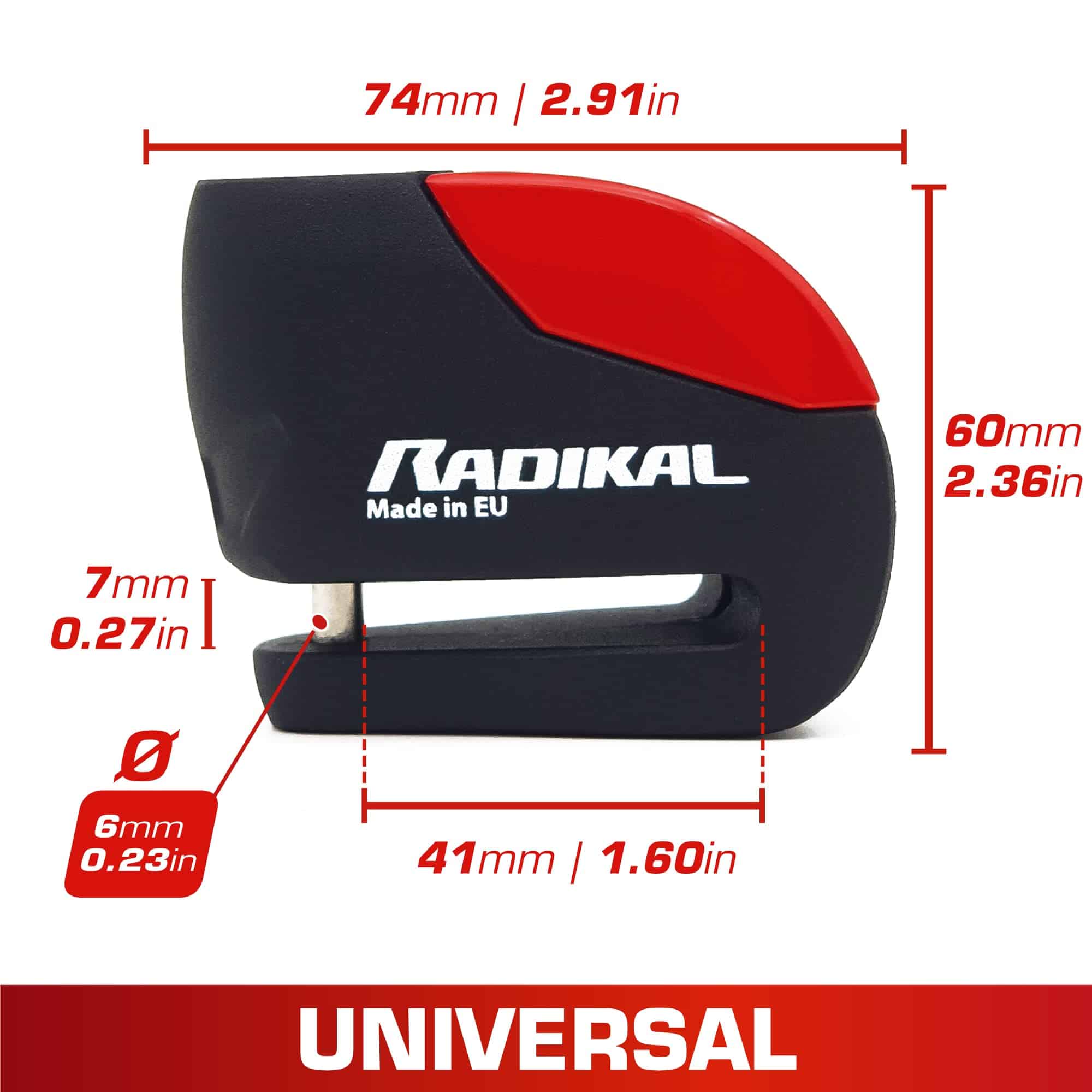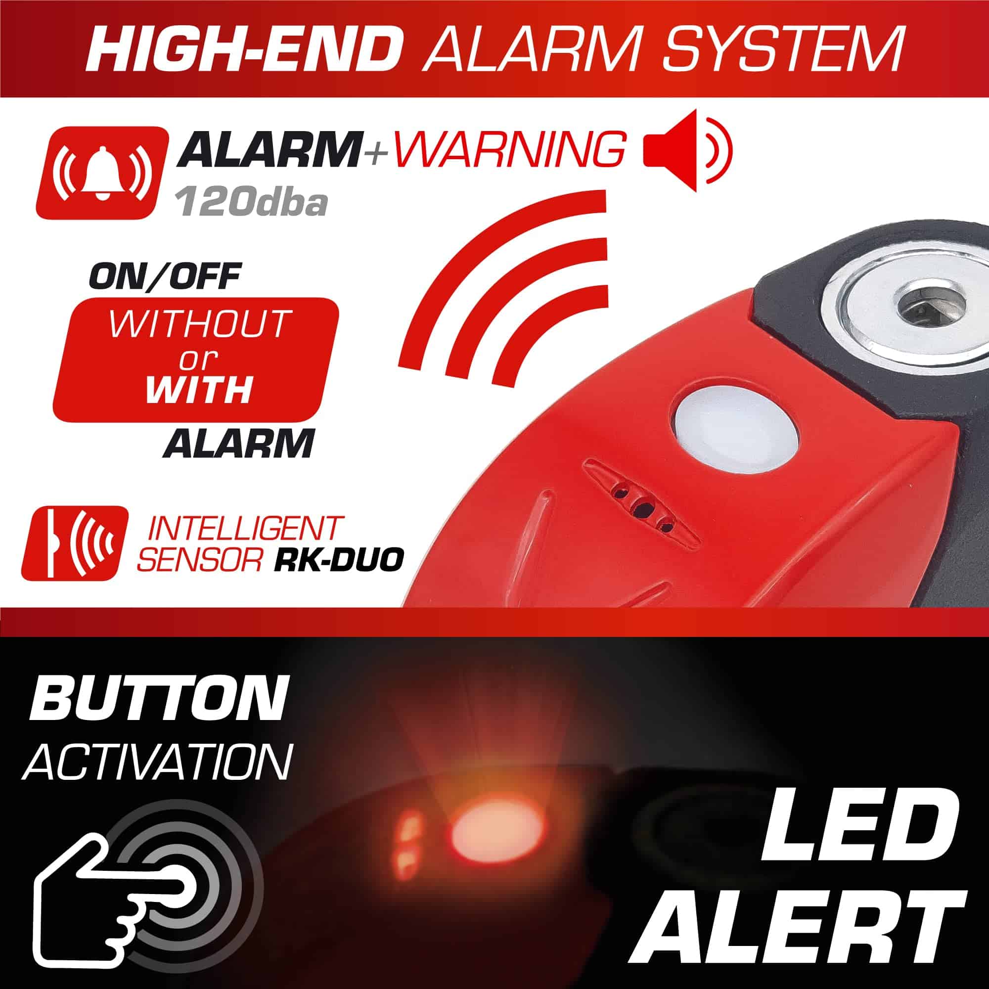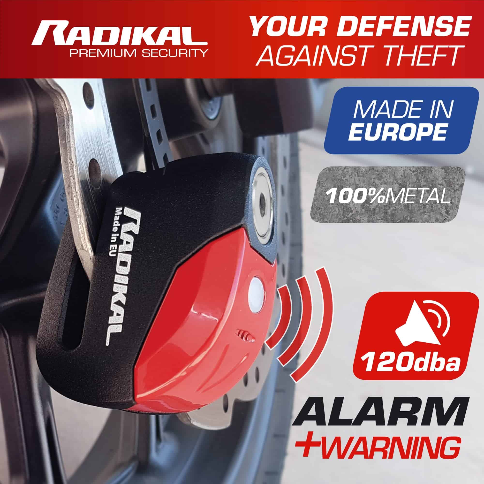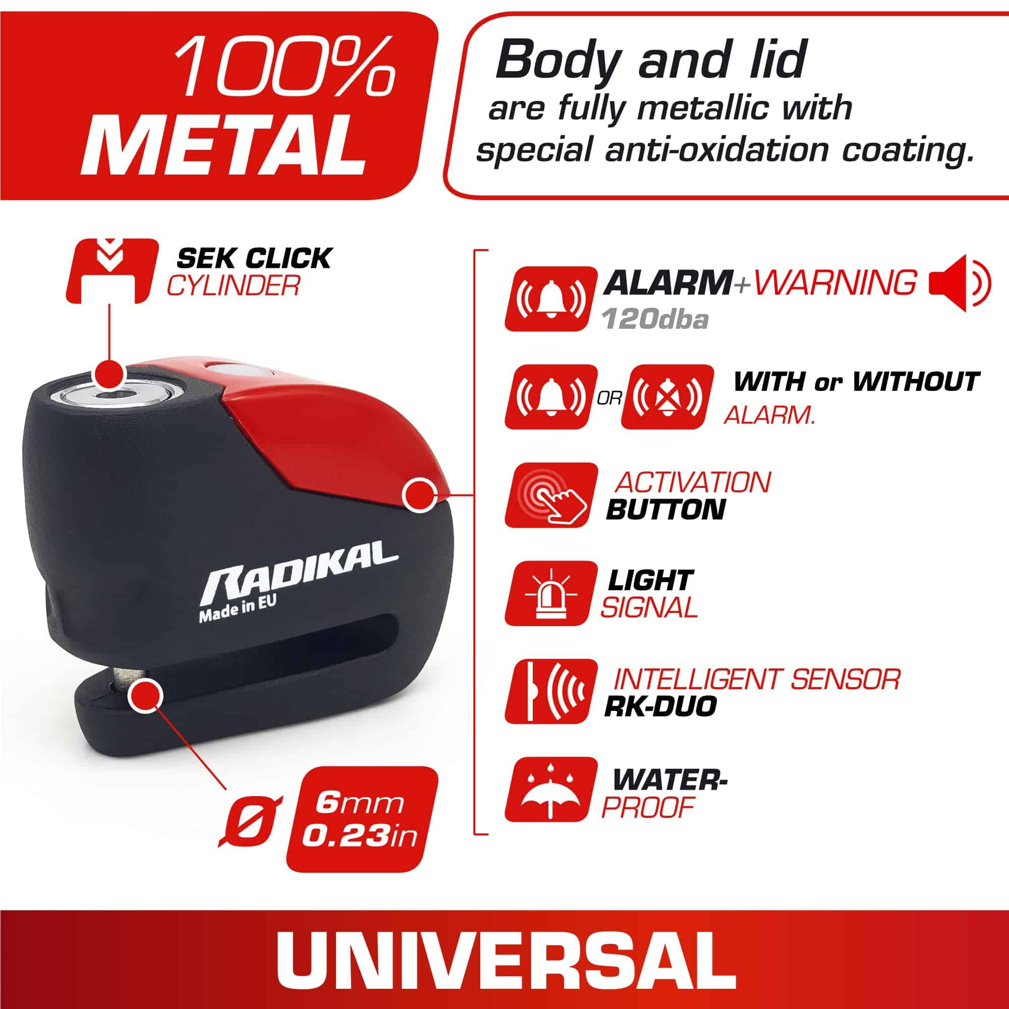 Candado de disco con alarma RADIKAL RK9 120db Botón ON, Más