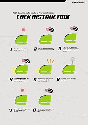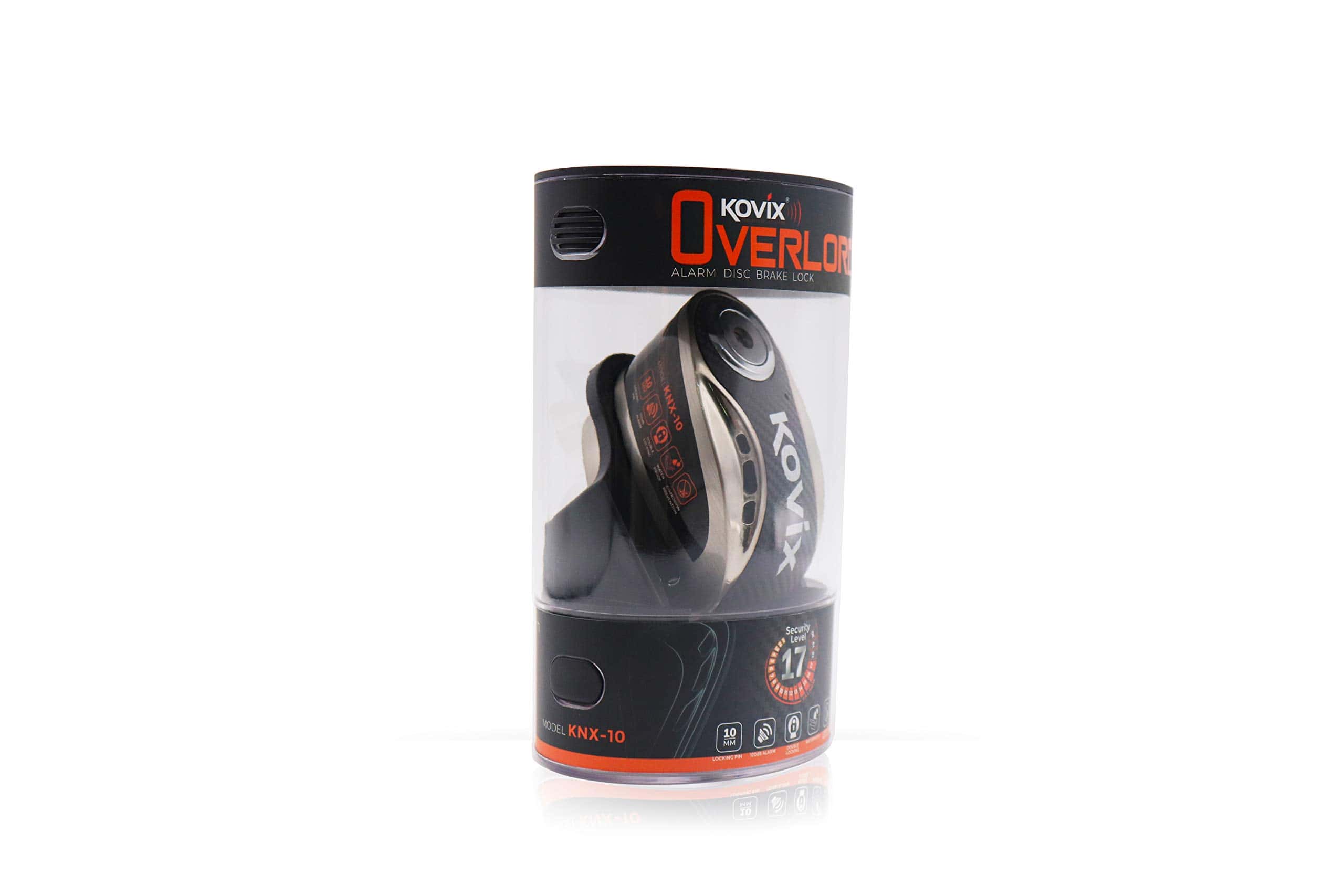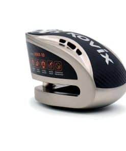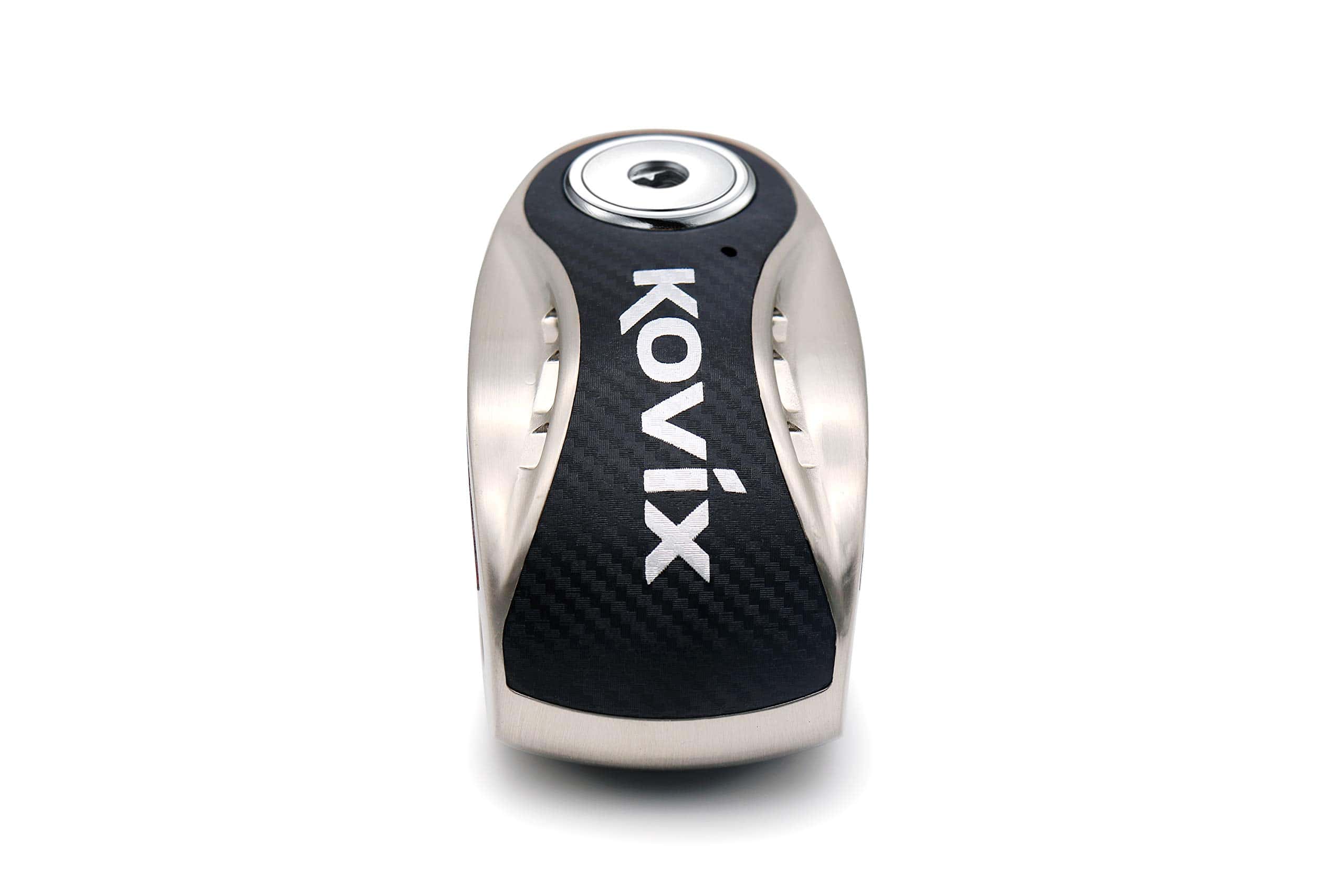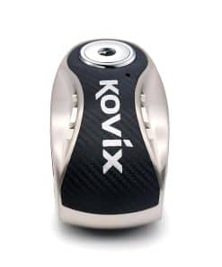 Candado de disco de alarma KOVIX para motocicleta. Inmoviliza el vehículo para prevenir robos y evita el robo de ruedas. Alarma de 120dB. Diámetro de pin de 10mm. Cilindro de alta seguridad con estilo disco. Clasificación IP67 a prueba de agua. Resistente a la corrosión.