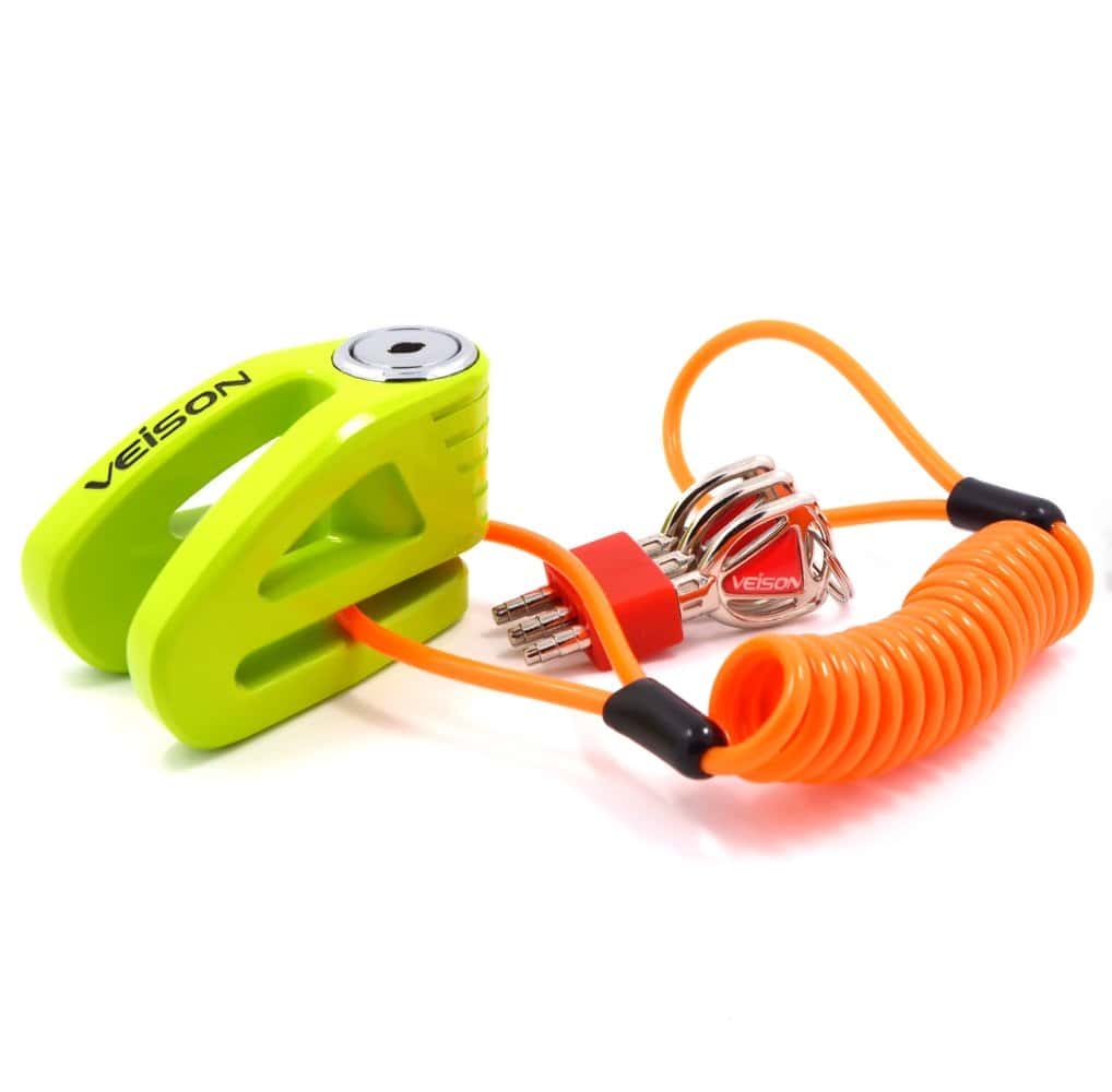 Protege tu bicicleta o motocicleta con este candado de disco de freno resistente y pesado de Acekit Veison. Cuenta con un cuerpo fortalecido que lo hace resistente a sierras, junto con un perno de bloqueo endurecido de 6 mm para mayor seguridad. Incluye un cable recordatorio para evitar olvidar el candado puesto. Ideal para proteger tu vehículo de posibles robos.