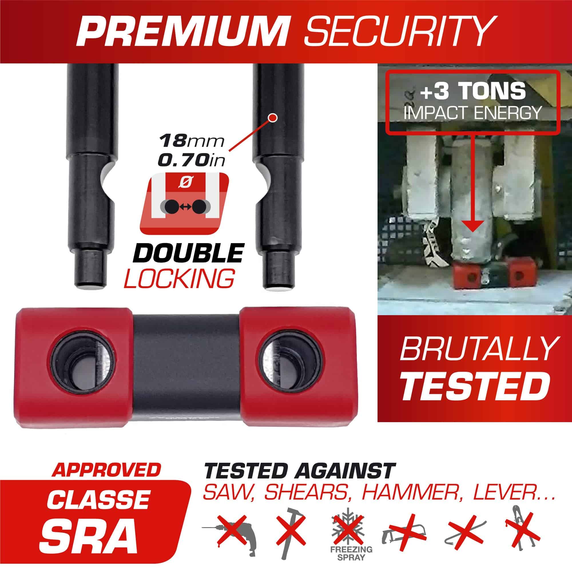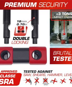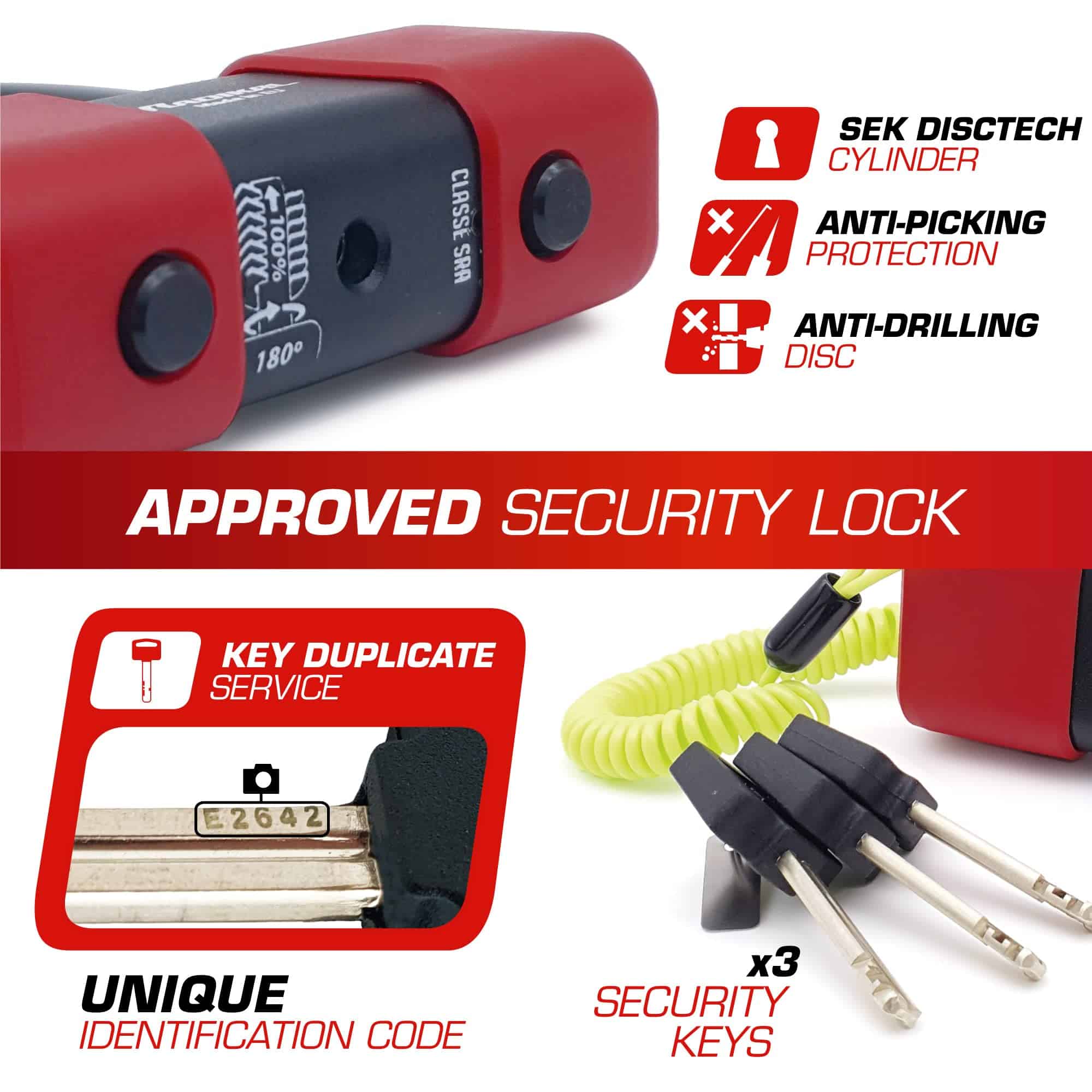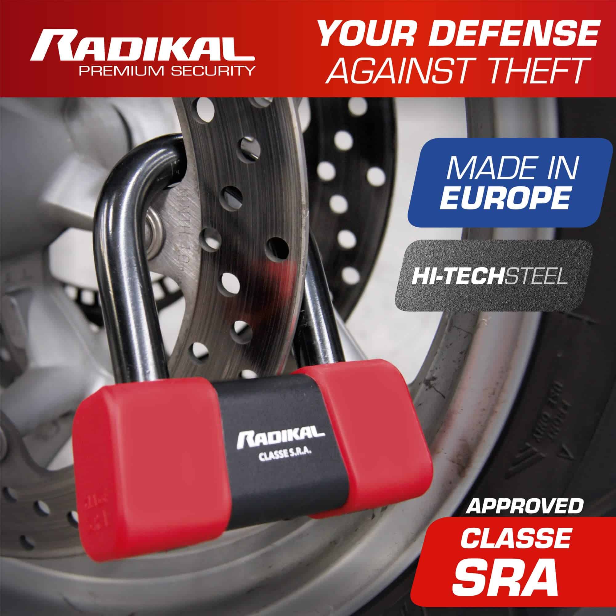 Tu defensa contra el robo de motocicletas nunca ha sido tan segura y eficaz como con el candado de disco mini U RADIKAL RK75. Aprobado por la CLASE SRA, este candado cuenta con un gancho de acero endurecido de 18mm/0.70in que ha sido probado con éxito contra sierras, tijeras, martillos, palancas y otros brutales ataques. Además, su mecanismo de doble bloqueo y núcleo de disco de alta seguridad SEK DISCTECH garantizan una protección excepcional contra los intentos de robo.