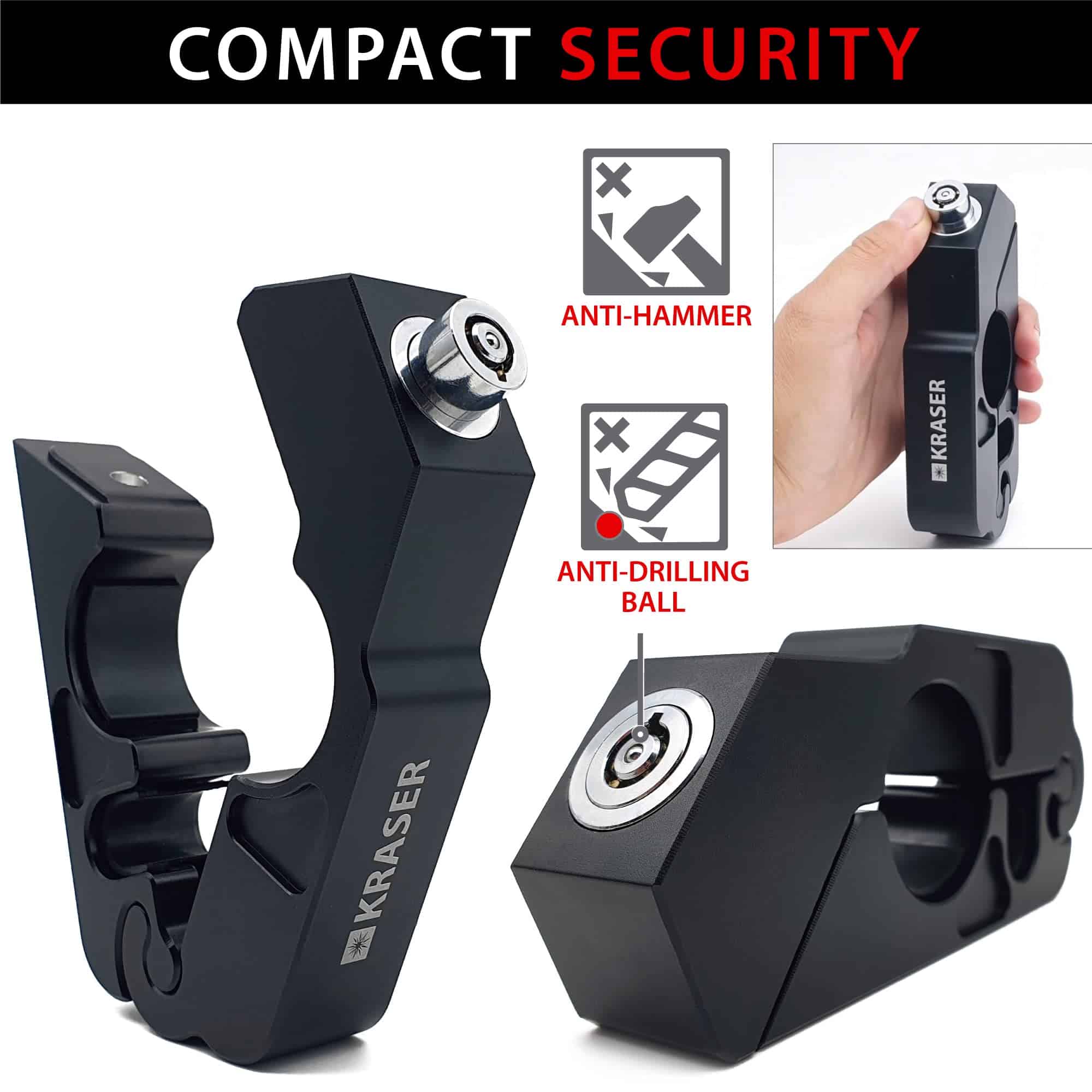 Candado de manillar para motocicleta KRASER KR720B, Bloqueo de agarre, Bloqueo de clic, Bloqueo de manija de freno de anti robo, Cerradura de seguridad de palanca de embrague, Universal para scooter, motoneta, quad, bicicleta eléctrica, Ebike