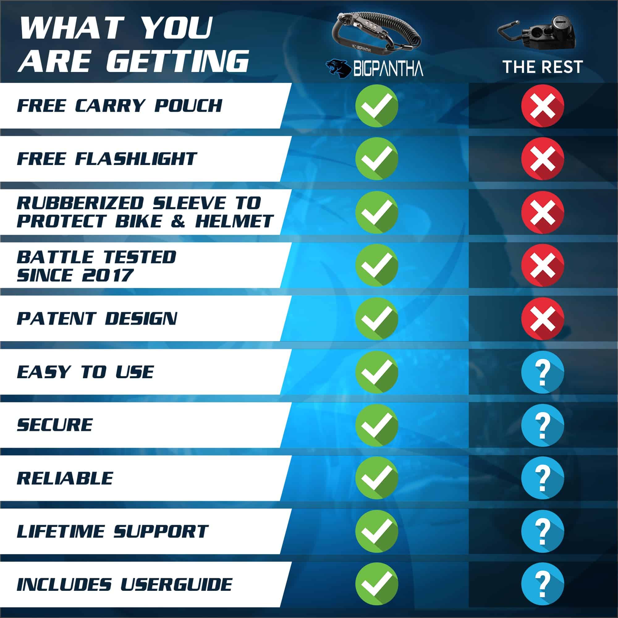 5. – Como el innovador original de candados de casco con mosquetón para motocicletas en nuestra tienda, BigPantha lidera con calidad y fiabilidad. Al elegir este candado, estás invirtiendo en un producto de una marca que ha establecido el estándar en seguridad de equipos de motocicletas, asegurando que tu equipo permanezca donde lo dejaste.