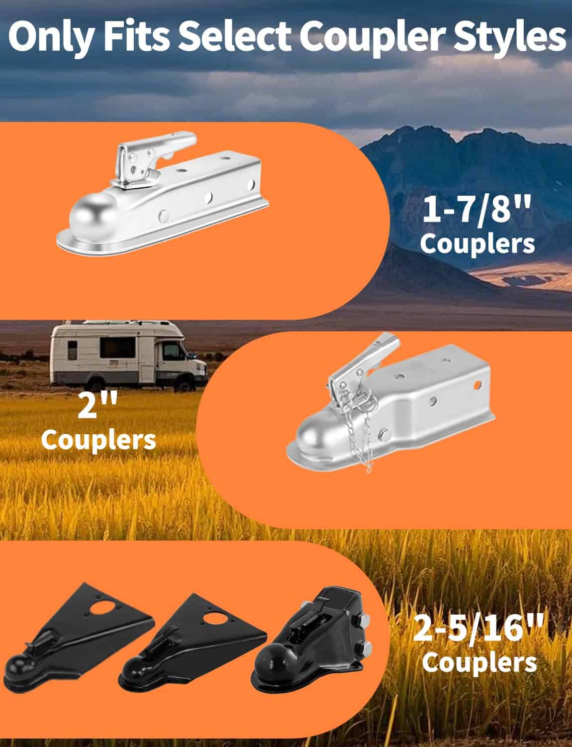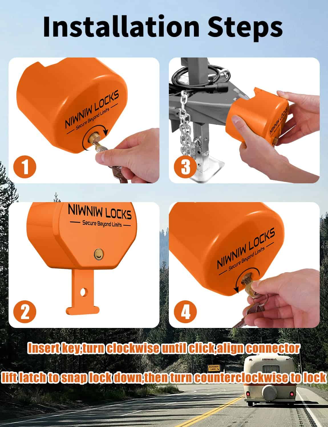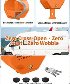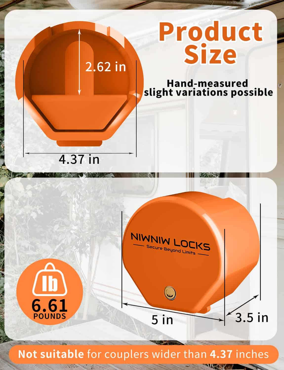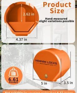 Candado para enganche de remolque de alta resistencia – Ajuste universal 1-7/8″ 2″ 2-5/16″ Acopladores | Candado antirrobo para remolque de caravana de camión Barco | Diseño de seguridad de acero estructural (Naranja). Este candado para enganche de remolque de alta resistencia está diseñado para brindar protección antirrobo confiable para una variedad de industrias. Fabricado en acero al carbono resistente con un diseño robusto de una sola pieza, este candado ofrece una disuasión eficaz contra robos mediante la resistencia contra martillos pesados, herramientas eléctricas y ataques de fuerza bruta. Es ideal para proteger los acopladores de RV, caravanas, barcos y camionetas pickup. El mecanismo de bloqueo de una sola operación permite asegurar el remolque en segundos, sin la necesidad de herramientas o pasos complicados. Diseñado para una operación intuitiva con una sola mano e incluso en condiciones adversas. Ajuste universal para acopladores de 1-7/8″, 2″ y 2-5/16″ (dependiendo del modelo específico), se recomienda verificar las especificaciones del acoplador antes de la compra para garantizar un ajuste óptimo y una seguridad superior. El sistema de defensa todo clima incluye varias cubiertas de silicona que actúan como escudos resistentes al mal tiempo, protegiendo los mecanismos de bloqueo de la lluvia, la nieve, el daño UV y los desechos. Su construcción resistente al óxido permite un rendimiento confiable en diversos entornos, como costeros, desérticos o sub-cero. Se suministra con múltiples llaves de repuesto y protectores de núcleo intercambiables para garantizar acceso de respaldo y durabilidad a largo plazo, lo que lo convierte en una solución conveniente para operadores de flotas o propietarios que comparten el acceso al remolque entre equipos.