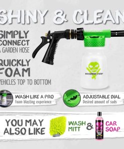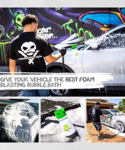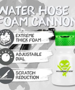 El Cañón de Espuma para Manguera de Agua Voodoo Ride hace que lavar cualquier vehículo sea muy sencillo. Se conecta rápidamente a cualquier manguera de jardín estándar. Los diferentes ajustes de espuma permiten crear rápidamente una gruesa capa de espuma en cualquier vehículo de cualquier tamaño. Obtén la proporción perfecta de agua y jabón con líneas de llenado de agua y jabón convenientes directamente en el bote.