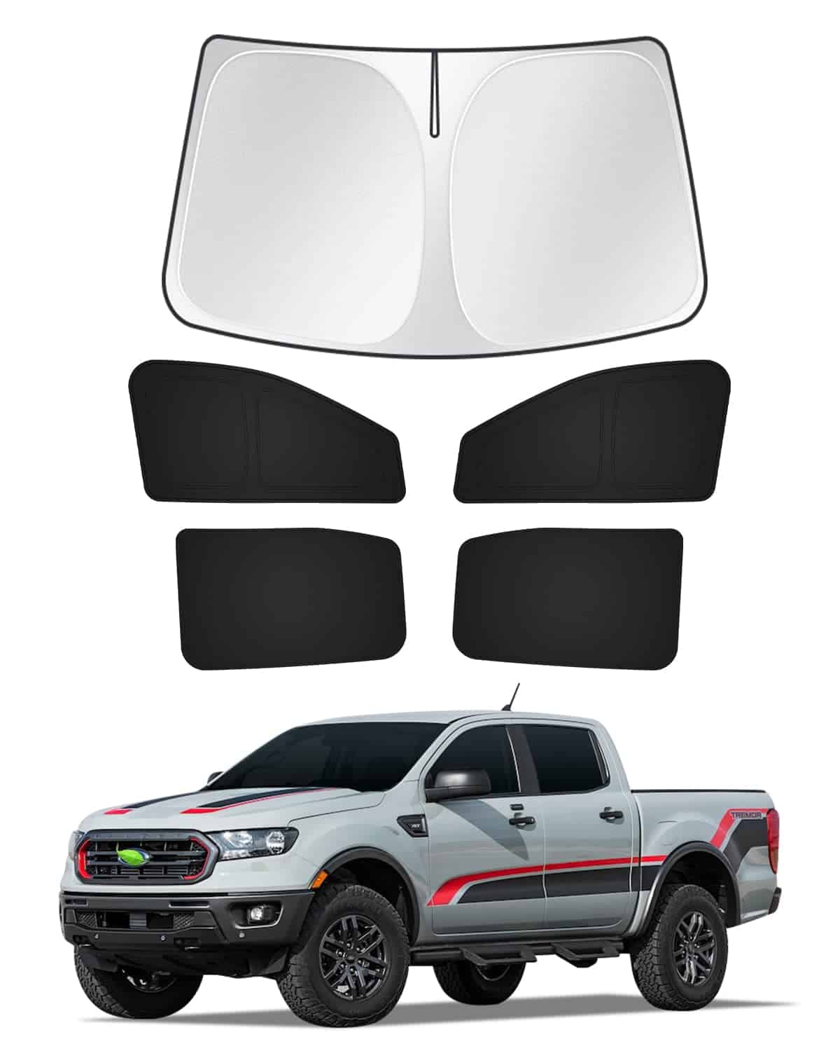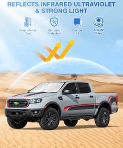 Canvcle Sunshades for 2019-2024 2025 Ford Ranger 4Door Windshield Sunshade Side Rear Windows Sun Visor Shield Privacy Cover Keep Vehicle Cool Black 5PCS – Este protector solar completo de ventanas Canvcle está diseñado específicamente para Ford Ranger 4 puertas 2019 2020 2021 2022 2023 2024 2025 sin dejar espacios. Las cubiertas de ventanas proporcionan protección UV completa para tu coche, manteniéndolo más fresco en los días calurosos. Protege el interior de tu coche de los dañinos rayos UV. Las cortinas para ventanas también protegen a bebés y niños del sol y reducen la temperatura interior del coche. ¡Grandes accesorios para tu coche! Este kit de parasol para ventanas es perfecto para bloquear los dañinos rayos UV que pueden dañar el interior de tu coche. Las cortinas para ventanas también protegen a los bebés y niños del sol y reducen la temperatura interior del coche. También proporciona un espacio más oscuro para mayor privacidad cuando viajas o acampas. ¡Disfruta mejor del camping y descansa! Esta visera solar plegable proporciona un apagón completo para mayor privacidad y bloquea el deslumbramiento del sol. Haz de tu coche un lugar más oscuro para descansar o tener privacidad durante el almuerzo o el camping. Fácil de instalar y quitar. Simplemente mete las cubiertas de ventanas del coche en cada marco de ventana, solo toma unos minutos. Conveniente para el uso diario, puedes quitar la cubierta de sombra para ventanas cuando no la necesites.