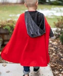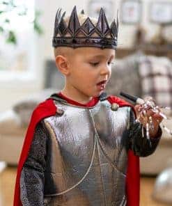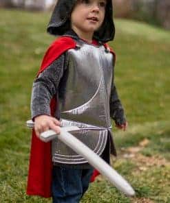 Deja que tu pequeño se convierta en un caballero de la mesa redonda o salve a una dama en apuros con su nuevo disfraz de Caballero Real! Armadura plateada para el pecho hecha de una espuma suave de sellado térmico. Mangas y capucha hechas de tela que le dan una sensación de cota de malla real. Capa roja cosida que fluye. No hay telas que piquen, y viene con costuras y dobladillos completamente terminados. No hay botones ni cremalleras que puedan frustrar los dedos pequeños, ¡y lo mejor de todo es que es lavable a máquina! ¡Diseñado por dos mamás, Jenny y Heather, con sus pequeños príncipes y princesas propios – Los productos de Little Adventures son DISFRACES HECHOS PARA EL JUEGO DIARIO! Heather y Jenny estaban frustradas con el hecho de que los disfraces no podían lavarse. Las telas se desmoronarían en la lavadora y muchas debían ser lavadas en seco, una idea absolutamente absurda para una mamá práctica. ¡Sabían que debía haber una mejor manera! ¡Así comenzó Little Adventures! (Los accesorios se venden por separado). CÓMODO – LAVABLE – JUEGO DIARIO – PORQUE LA INFANCIA ES UNA AVENTURA!