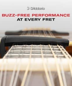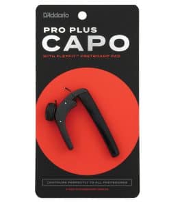 Gracias a nuestra revolucionaria tecnología FlexFit, la almohadilla utilizada en el brazo del capo del D’Addario Pro Plus Capo imita la forma en que funciona la anatomía del dedo humano al presionar una cuerda para que nunca tengas que preocuparte por zumbidos no deseados, cuerdas mudas o problemas de entonación causados por una presión variable en este capo premium. Con una presión general mínima, cada cuerda suena clara, limpia y afinada. El Pro Plus está diseñado para funcionar perfectamente en virtualmente todas las guitarras, incluyendo las guitarras clásicas de diapasón plano, hasta las guitarras eléctricas vintage con un radio de diapasón de 7″.