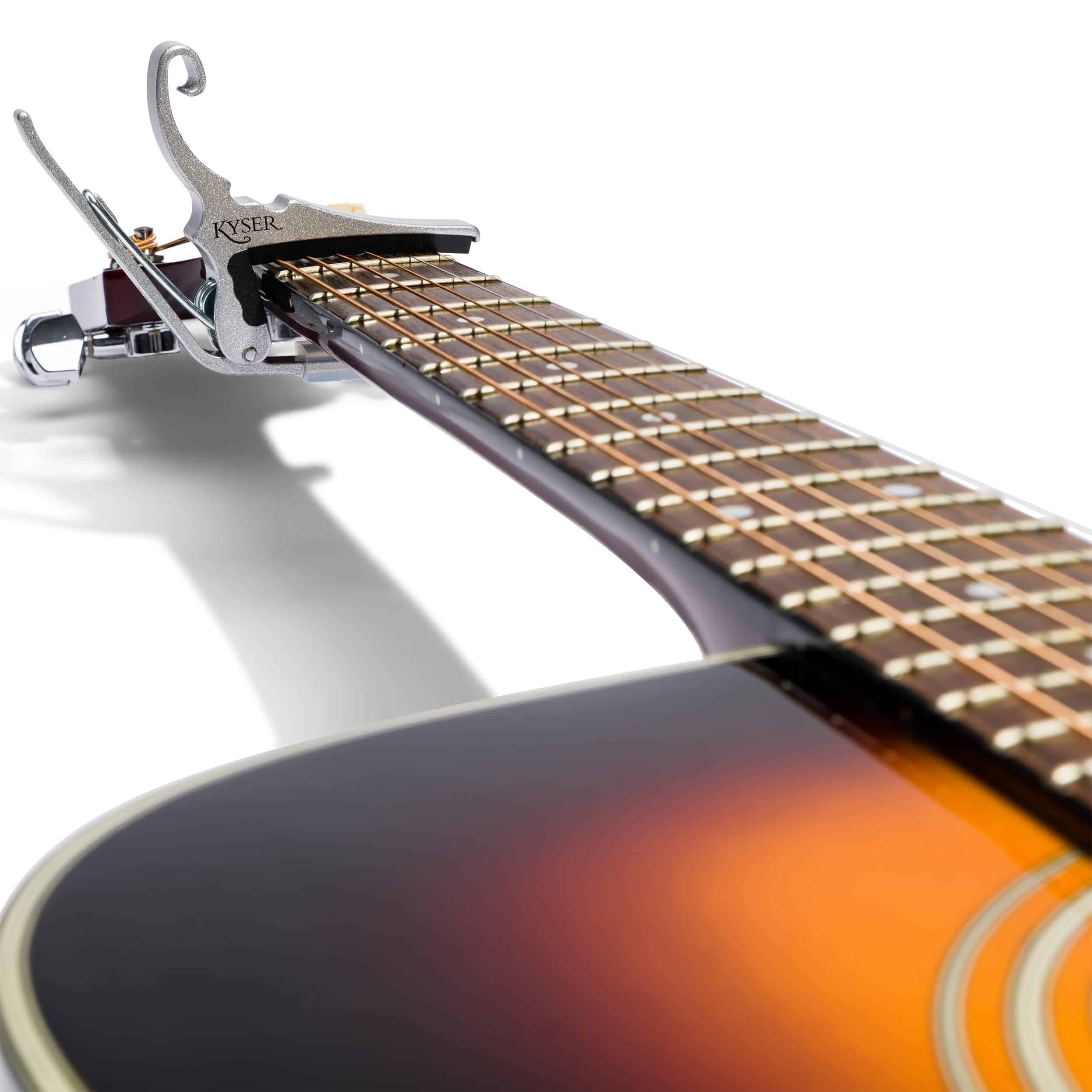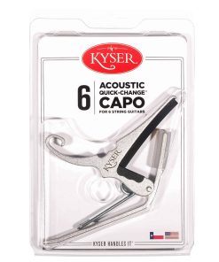 Un capo Kyser Quick-Change está expertamente diseñado y construido para durar. Es confiable y hace exactamente lo que está diseñado para hacer: elevar claramente el tono de la guitarra acústica de 6 cuerdas para que puedas tocar en una tonalidad diferente sin necesidad de volver a afinar o cambiar los dedos. Tanto los profesionales experimentados como los principiantes aprecian cómo el capo Kyser Quick-Change les ayuda a transponer su guitarra en segundos, con solo una mano. La belleza del capo Kyser Quick-Change radica en su simplicidad. Kyser fue pionero en este diseño y aunque a menudo imitado, un Kyser nunca es igualado. No hay sustituto para un auténtico capo Kyser Quick-Change. Hecho a mano en Texas, EE. UU. Garantizado de por vida.