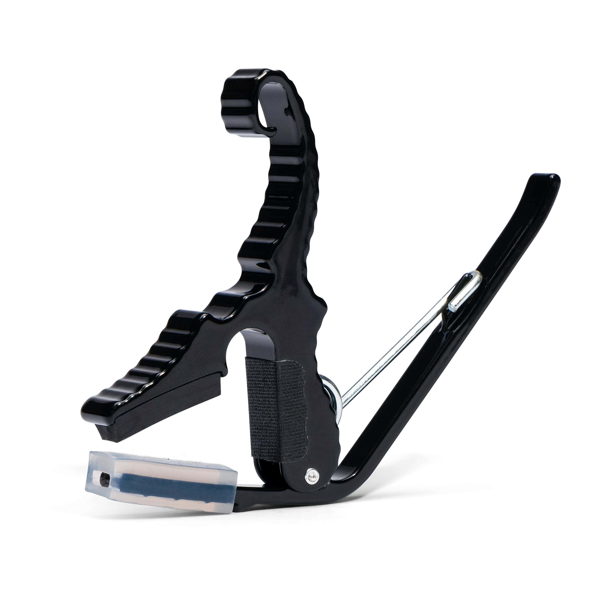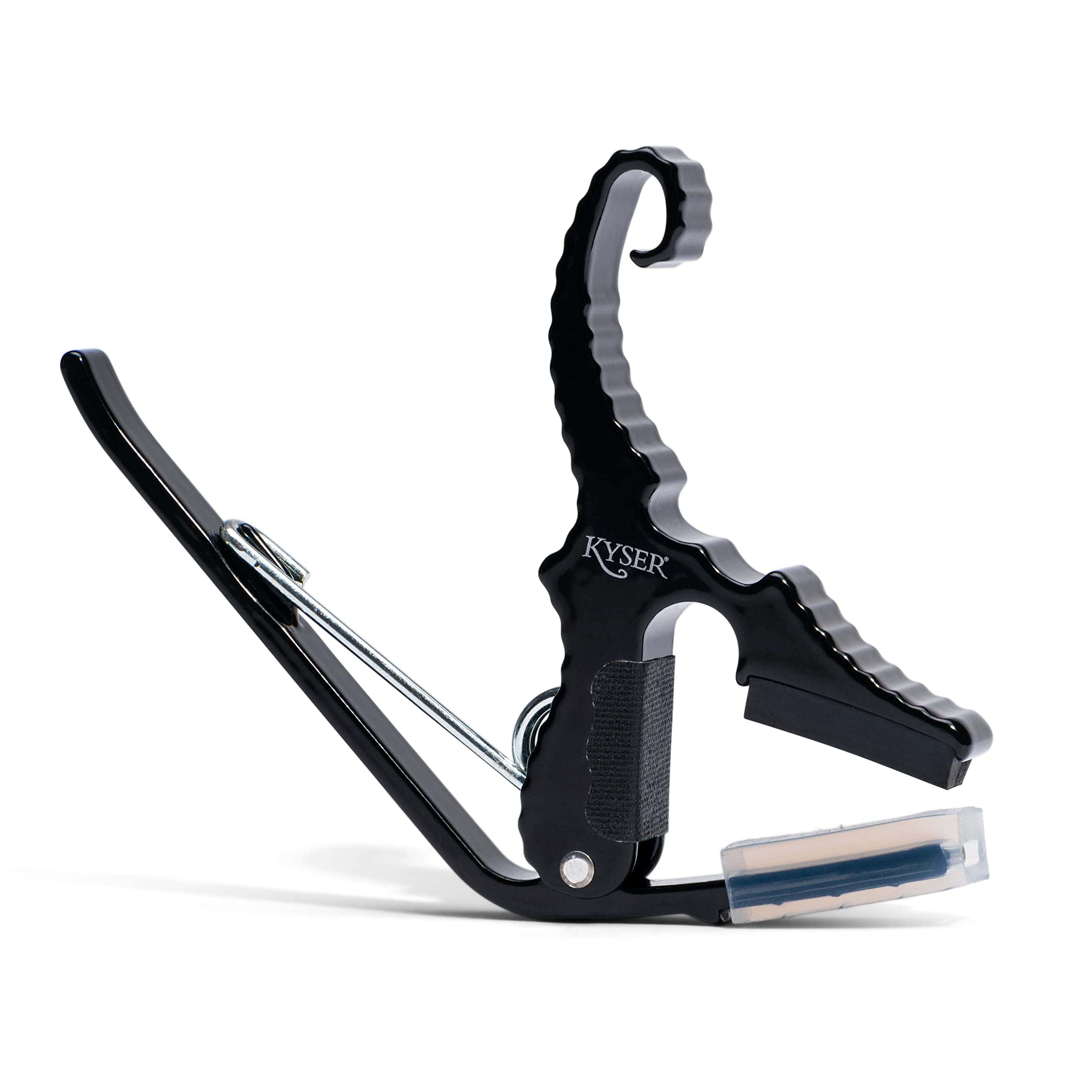 Capotraste parcial Kyser Short-Cut KG3B para guitarra de 3 cuerdas en afinación DADGAD. Este capotraste es ideal para lograr sonidos únicos y para crear afinaciones alternativas en tu guitarra. Su diseño original y de una sola mano permite un fácil manejo y almacenamiento, ya que se puede guardar en el clavijero de la guitarra cuando no está en uso. Fabricado en los Estados Unidos con altos estándares de calidad y garantizado de por vida, el capotraste Kyser Short-Cut es una excelente herramienta para músicos creativos.