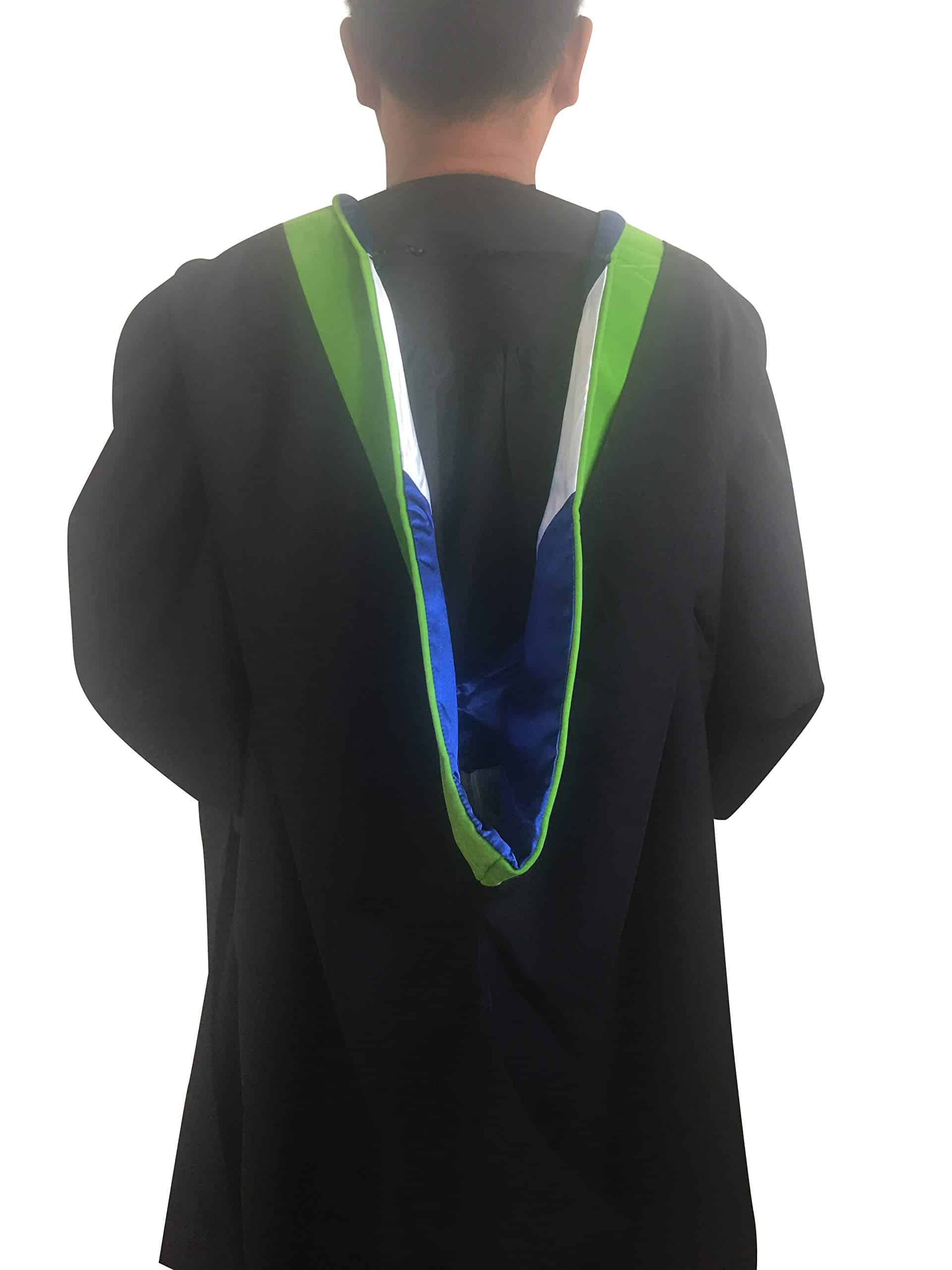 Cappe Diem Capucha de Graduación de -Verde-Azul Real/Blanco