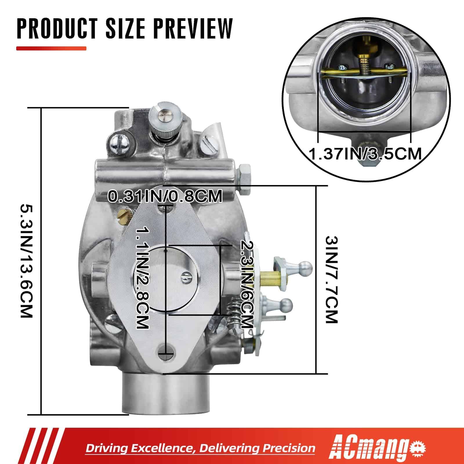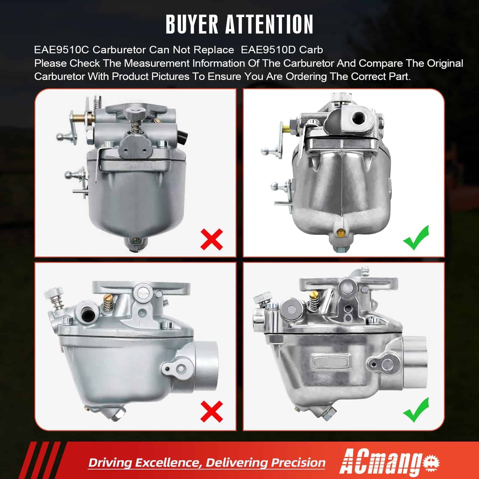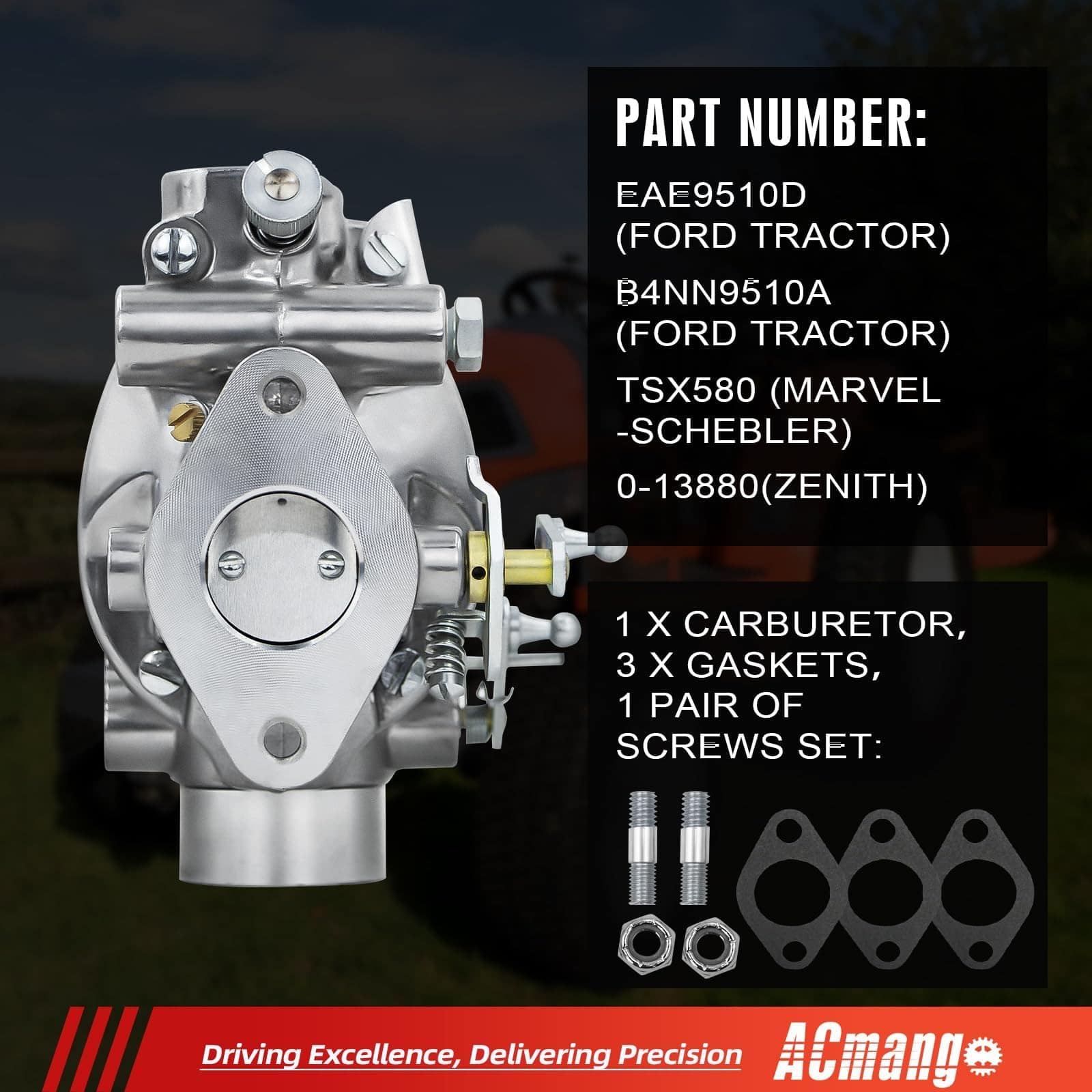 El carburador ACmango es compatible con los motores de tractor Ford 501, 541, 611, 621, 631, 651, 661, 671, 681, 701, 741, 771, 2030, 2031, 2110, 2111, 2120, 2130, 2131. Reemplaza los números de parte 312954, 310746, B8NN9510A, TSX692, TSX765, 1103-0003. No se incluye instrucciones de instalación, se recomienda la instalación profesional. Todos los productos son nuevos y de calidad garantizada. Se recomienda limpiar los canales de aceite de los carburadores y los filtros de aire, así como usar combustible limpio antes de instalarlos. Por favor, verifique los modelos y las imágenes proporcionadas para garantizar su compatibilidad. ACmango proporciona este producto con una garantía de devolución del dinero de 30 días. Por favor, contáctenos primero con cualquier pregunta, le responderemos en un plazo de 24 horas laborables. Valoramos su experiencia de compra y nos esforzamos por brindar productos y servicios de calidad.