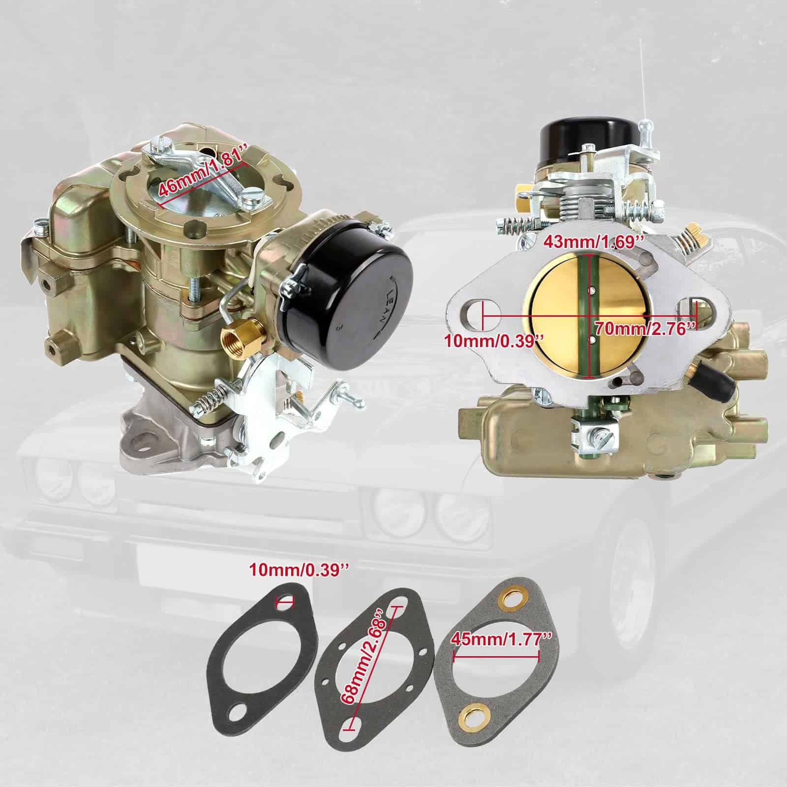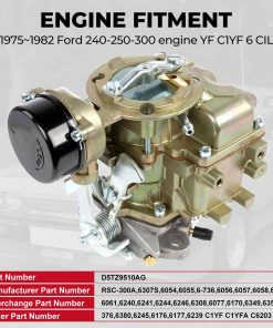 p Compatibilidad: Por favor, compare su carburador con las imágenes para asegurarse de que esta pieza se ajuste a su vehículo 1975~1982 Ford motor 240-250-300 YF C1YF 6 CIL Número de pieza: D5TZ9510AG Número de parte del fabricante: RSC-300A,6307S,6054,6055,6-736,6056,6057,6058,6059 Número de intercambio: 6061,6240,6241,6244,6246,6308,6077,6170,6349,6350 Otros números de parte: 376,6380,6245,6176,6177,6239 C1YF C1YFA C6203 Nota: Los canales de aceite de los carburadores se obstruirán sin limpieza. Limpie los canales de aceite y los filtros de aire, así como use combustible limpio antes de instalar los carburadores. Carburador de tipo YF Style carter de repuesto para Ford Tipo: estrangulador automático Material: aleación de zinc resistente Diámetro del agujero del lado del acelerador: 43mm (11/16″) Alta potencia Estrangulador mecánico, 1 barril, entrada única Agrega un 5~10% de potencia y mantiene el consumo de combustible casi de fábrica Instrucciones: no incluidas Incluido en el paquete: 1x carburador para Ford, 2x juntas de montaje /p
