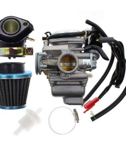 Modelos de ajuste: (Consejos: presiona «Ctrl + F» para ayudarte a localizar rápidamente el modelo que estás buscando) Kymco Agility125 150 4 tiempos, Taotao 125 150 4 tiempos, Lance Vintage 150, Eaglecraft 150, Znen 150, Tank 150, Retro 150, BMS 150, Baja SC125 SC150, Jonway 150, Vento 150, Shenke 150, Yerfdog GX150 Spiderbox 150cc, etc. Especificaciones: Diámetro interior de admisión: 24mm, Diámetro exterior de interfaz de filtro de aire: 42mm. Lista de paquetes: 1x Carburador, 1x Colector de admisión, 1x Filtro de aire, 1x Filtro de combustible. Por favor, verifica los modelos y las imágenes proporcionadas para asegurar el ajuste. Si no estás seguro, por favor contáctanos primero.