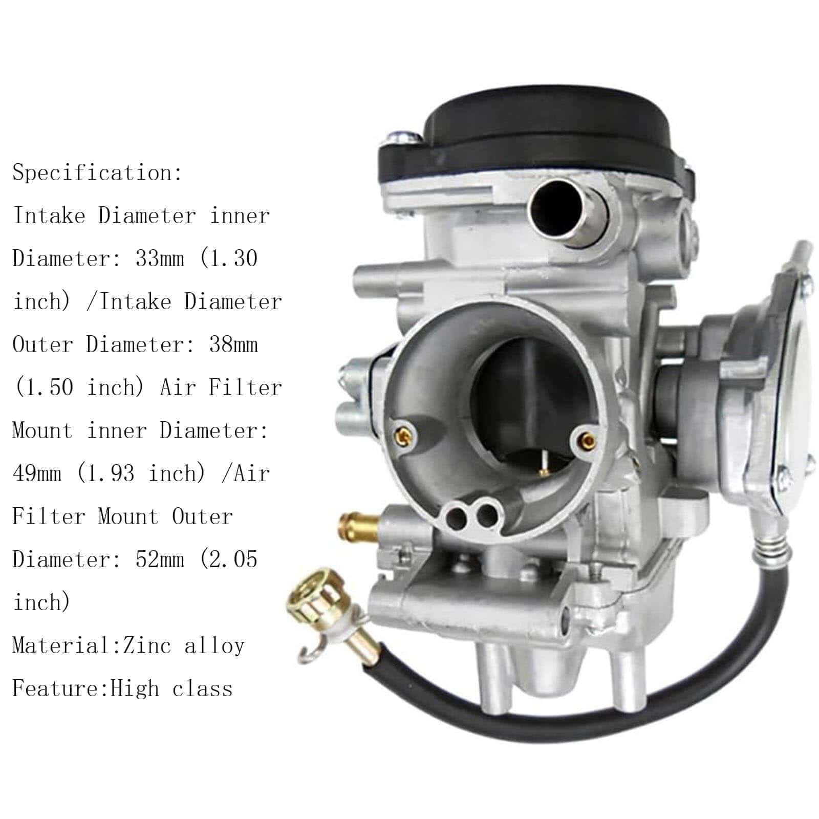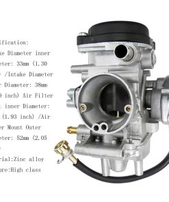Especificaciones: Diámetro de entrada Diámetro interno: 33 mm (1.30 pulgadas) / Diámetro externo de entrada: 38 mm (1.50 pulgadas) Diámetro interno del montaje del filtro de aire: 49 mm (1.93 pulgadas) / Diámetro externo del montaje del filtro de aire: 52 mm (2.05 pulgadas)