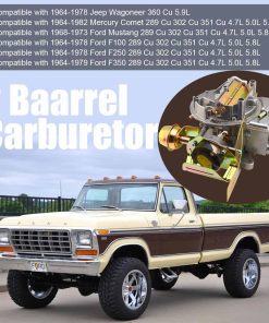 Totalmente Nuevo Carburador de 2 Barriles, mejora eficientemente la respuesta del acelerador, mantiene el consumo de combustible casi stock. Compatible con Jeep Wagoneer 1964~1978 Motor 360 Cu 5.9L; Compatible con Ford F100 1964~1978 Motor 289 Cu, 302 Cu, 351 Cu 4.7L 5.0L 5.8L; Compatible con Ford F250 1964~1978 Motor 289 Cu, 302 Cu, 351 Cu 4.7L 5.0L 5.8L; Compatible con Ford F350 1964~1979 Motor 289 Cu, 302 Cu, 351 Cu 4.7L 5.0L 5.8L; Compatible con Ford Mustang 1968~1973 Motor 289 Cu, 302 Cu, 351 Cu 4.7L 5.0L 5.8L; Compatible con Mercury Comet 1964~1982 Motor 289 Cu, 302 Cu, 351 Cu 4.7L 5.0L 5.8L. Número de Pieza: 2100 A800 2150 Paquete incluye: 1 x Carburador 1 x Junta de montaje 1 x Sello Notas 1) Por favor, confirme que su antiguo número de parte coincide con uno de los números de parte anteriores . 2) En el proceso de desarmar y armar el carburador, use herramientas apropiadas y fuerza moderada para prevenir la deformación de las piezas. Las partes desarmadas deben ser colocadas ordenadamente para prevenir la falta o el montaje incorrecto. 3) Por favor, limpie los canales de aceite y los filtros de aire, así como use el combustible limpio antes de instalar los carburadores. La limpieza del carburador debe llevarse a cabo en un lugar limpio. Para la limpieza de las partes internas, por favor use un limpiador especial para carburador o gasolina industrial. 4) No se incluye instrucciones y se recomienda instalación profesional