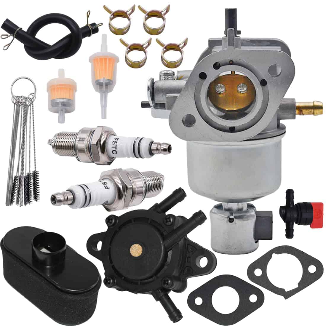 Carburador FINDCARB 15004-0827 diseñado para motores Kawasaki FS481V FH580V FS541V FR600V FS600V, una opción de alta calidad para reemplazar los carburadores originales. Este kit incluye 1 carburador, 2 filtros de combustible, 1 kit de limpieza, 4 abrazaderas, 1 caja de filtro de aire, 1 válvula de cierre de combustible, 2 bujías, 1 bomba de combustible y todos los accesorios necesarios mostrados en la imagen. Compatible con tractores Cub Cadet LTX1042KW XT2-LX42 LTX1046KW. Verifique la compatibilidad antes de realizar la compra para evitar problemas.