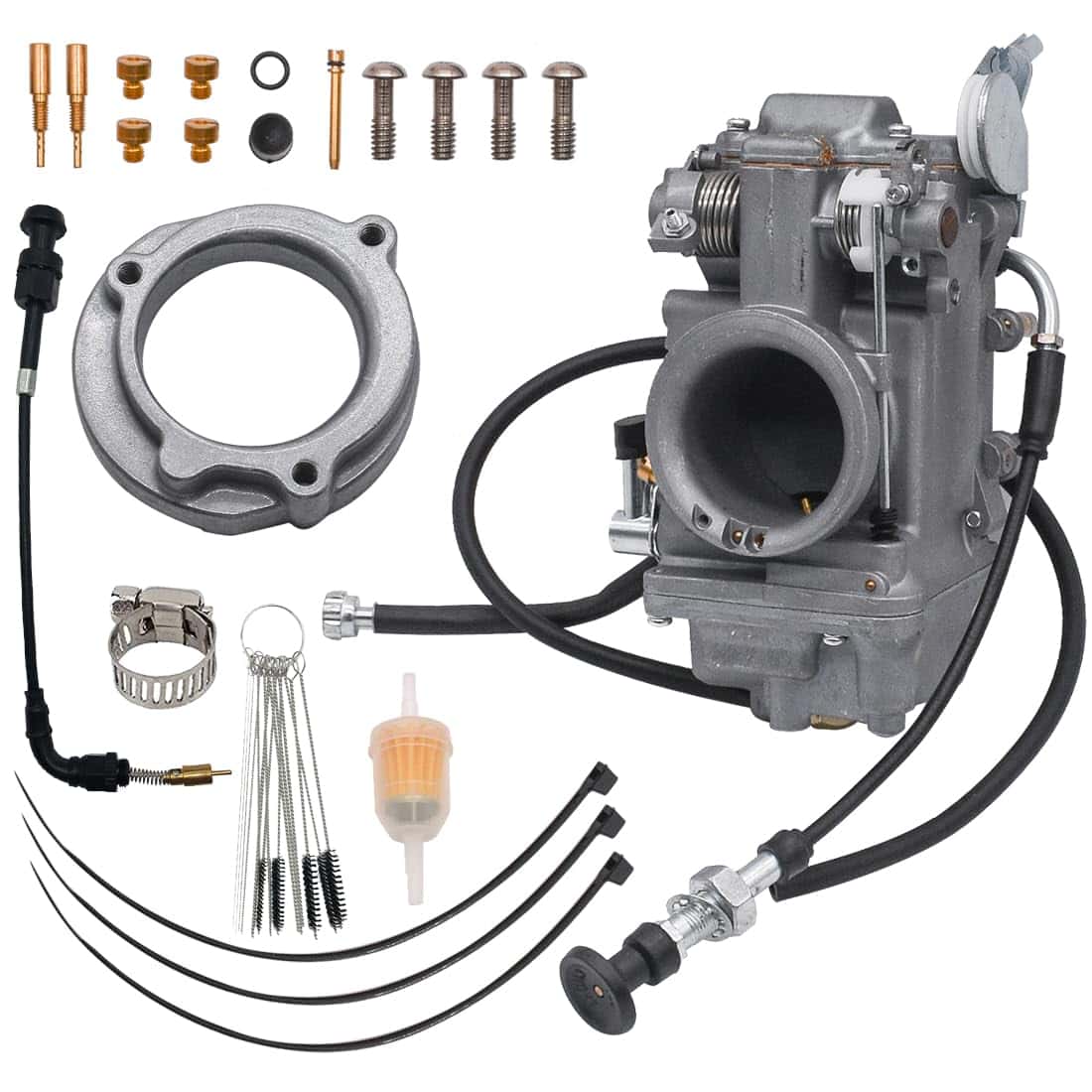 1. Ajuste: Carburador para Mikuni HSR45 45mm Harley EVO Twin Cam. Para más detalles, consulte la página de detalles.