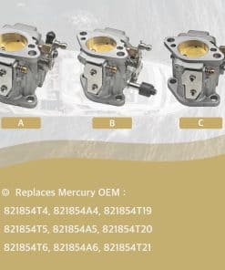 2. Este carburador innovador ofrece una serie de características y mejoras, incluyendo un carburador superior manual que reemplaza a Mercury 821854T4, 821854A4, 821854T19, un carburador central manual que reemplaza a Mercury 821854T5, 821854A5, 821854T20, y un carburador inferior manual 821854T6, 821854A6, 821854T21.