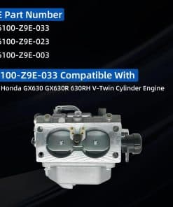 El Carburador 16100-Z9E-033 es una pieza de repuesto de alta calidad para motores de cilindros V-Twin Honda GX630. Tiene un excelente rendimiento, resistencia a la presión y al desgaste. Este kit de carburador incluye todo lo necesario para una instalación fácil y rápida. Asegúrese de verificar la compatibilidad de su motor y el número OE antes de realizar la compra. Con el carburador GX630, su motor funcionará de manera suave y eficiente, brindándole un excelente rendimiento.