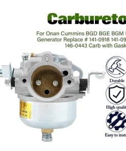 Reemplace su carburador defectuoso en su generador RV Onan Cummins BGD BGE BGM con este carburador de repuesto MOPASEN 146-0455. Este carburador se adapta a los modelos BGE Espec. A – J, BGD Espec. A – E, BGM Espec. A y viene con juntas para una fácil instalación. Todas las partes son completamente nuevas y de alta calidad garantizadas por MOPASEN. Asegúrese de verificar el número de parte y las fotos de la parte para garantizar que sea compatible con su generador. Si tiene alguna pregunta o problema, nuestro equipo de atención al cliente está siempre disponible para ayudarle.