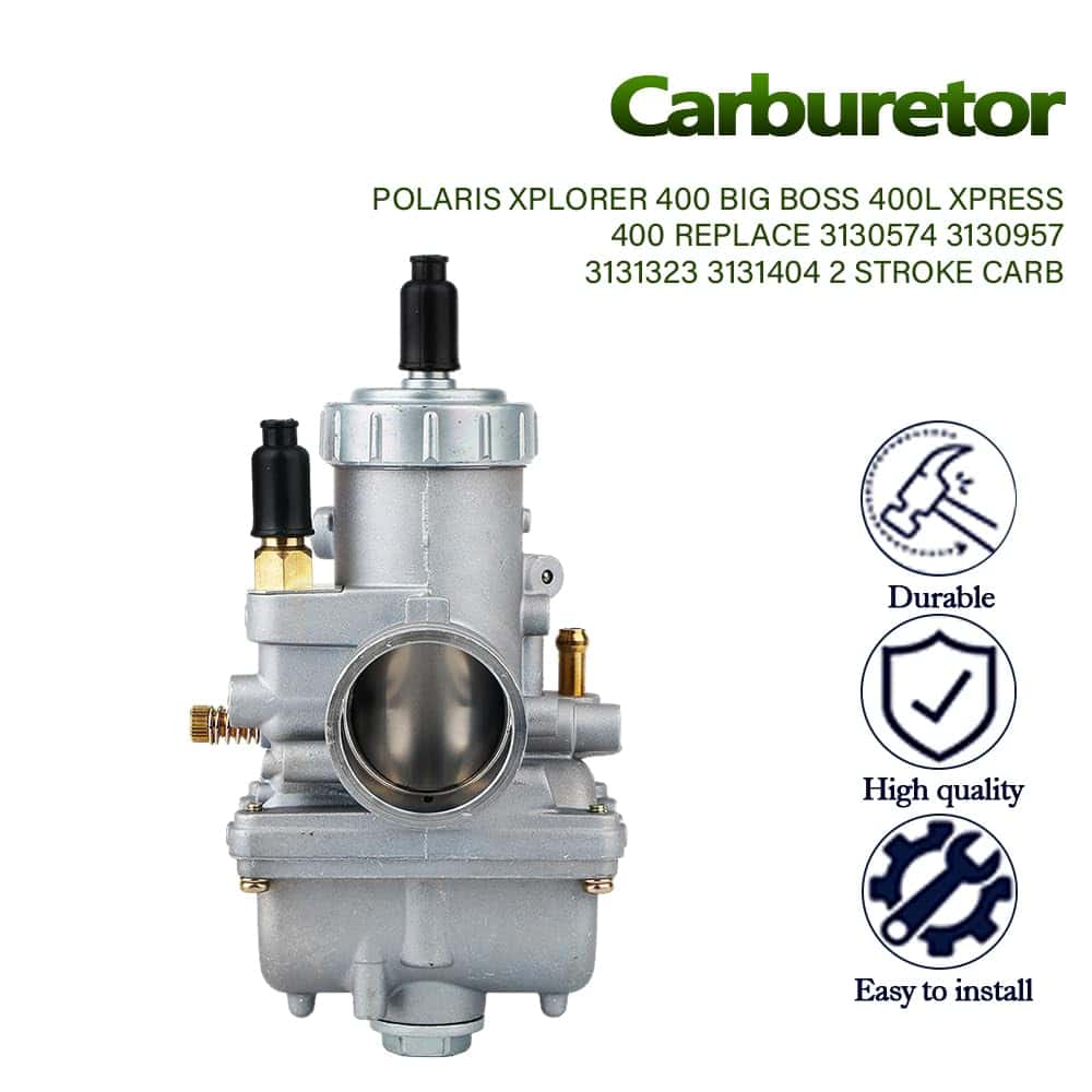 Este carburador de 2 tiempos de MOPASEN es compatible con varios modelos de Polaris, incluyendo Xpress 400, Sport 400, Sport 400L, Scrambler 400, Trail Blazer 400, Big Boss 400L, Sportsman 400, Xplorer 400 y Xplorer 400L 4×4. Reemplaza varios números de parte, como 3130574, 3130710, 3130957, 3131323 y 3131404. El paquete incluye un cable de estrangulador del carburador. Todos nuestros productos son nuevos y nunca han sido utilizados. Verifica cuidadosamente las fotos y la descripción de las partes antes de comprar para asegurarte de que es el producto que necesitas. Si tienes alguna duda, no dudes en ponerte en contacto con nosotros.