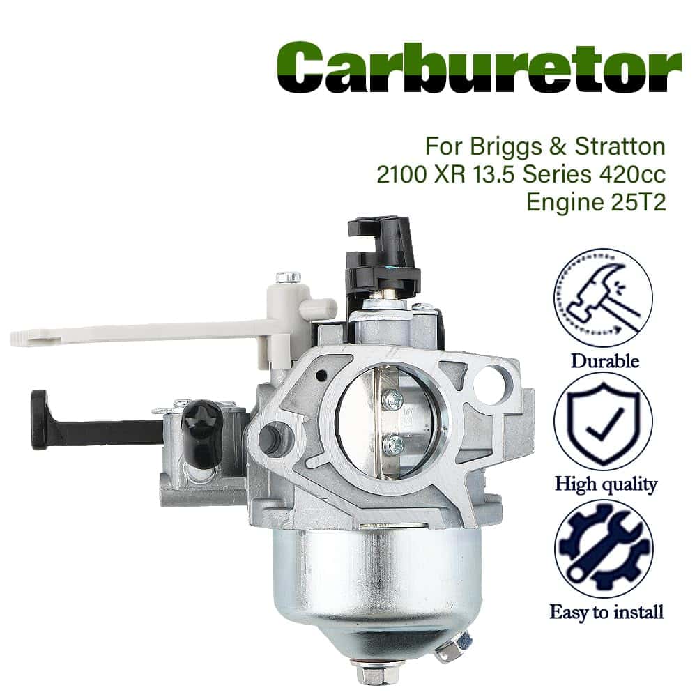 Este carburador MOPASEN es compatible con los motores de la serie BS 2100, incluidos los modelos 25T232, 25T235 y 25T237 con una potencia de 13.5hp y un diámetro de 90 mm. Fabricado con materiales de alta calidad, este carburador ha sido diseñado para garantizar un rendimiento óptimo en una amplia gama de equipos, como cortadoras de césped, motores pequeños, bombas de agua y compresores de aire, entre otros. El kit incluye líneas de combustible y juntas de montaje no asbestos para una instalación sencilla y segura. Con el carburador MOPASEN, su equipo funcionará de manera eficiente y sin problemas.