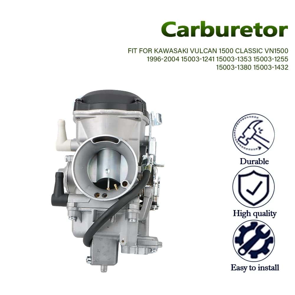 Carburador de repuesto de alta calidad para Kawasaki Vulcan 1500 Classic VN1500 1996-2004. Este carburador está diseñado para reemplazar los números de parte: 15003-1241, 15003-1353, 15003-1255 y 15003-1380. Su función es crucial para el funcionamiento adecuado de su motocicleta al atomizar la gasolina con la energía del flujo de aire de admisión. Antes de realizar la compra, asegúrese de que su modelo sea compatible con este carburador. Consulte nuestras especificaciones detalladas y números OEM para evitar errores de selección. Este paquete incluye 1 carburador tal como se muestra en la imagen.