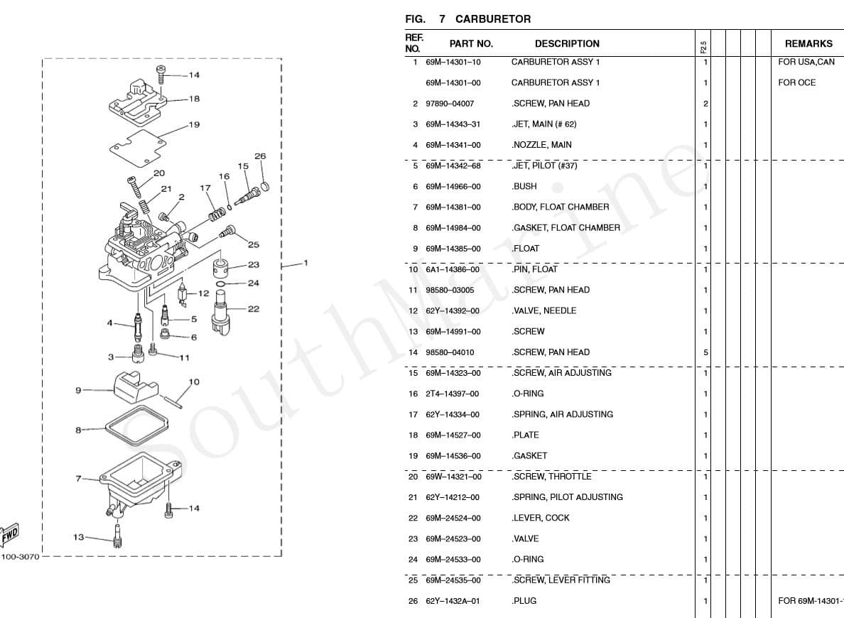 Reemplazo: 69M-14301-10, 69M-14301-00, 69M-14301-11. Aplicaciones: F2.5MSHB CARBURETOR 2003, F2.5MSHC CARBURETOR 2004, F2.5MSHD CARBURETOR 2005, F2.5MSH CARBURETOR a partir de 2006, F2.5SMHA 0 CARBURETOR a partir de 2006.