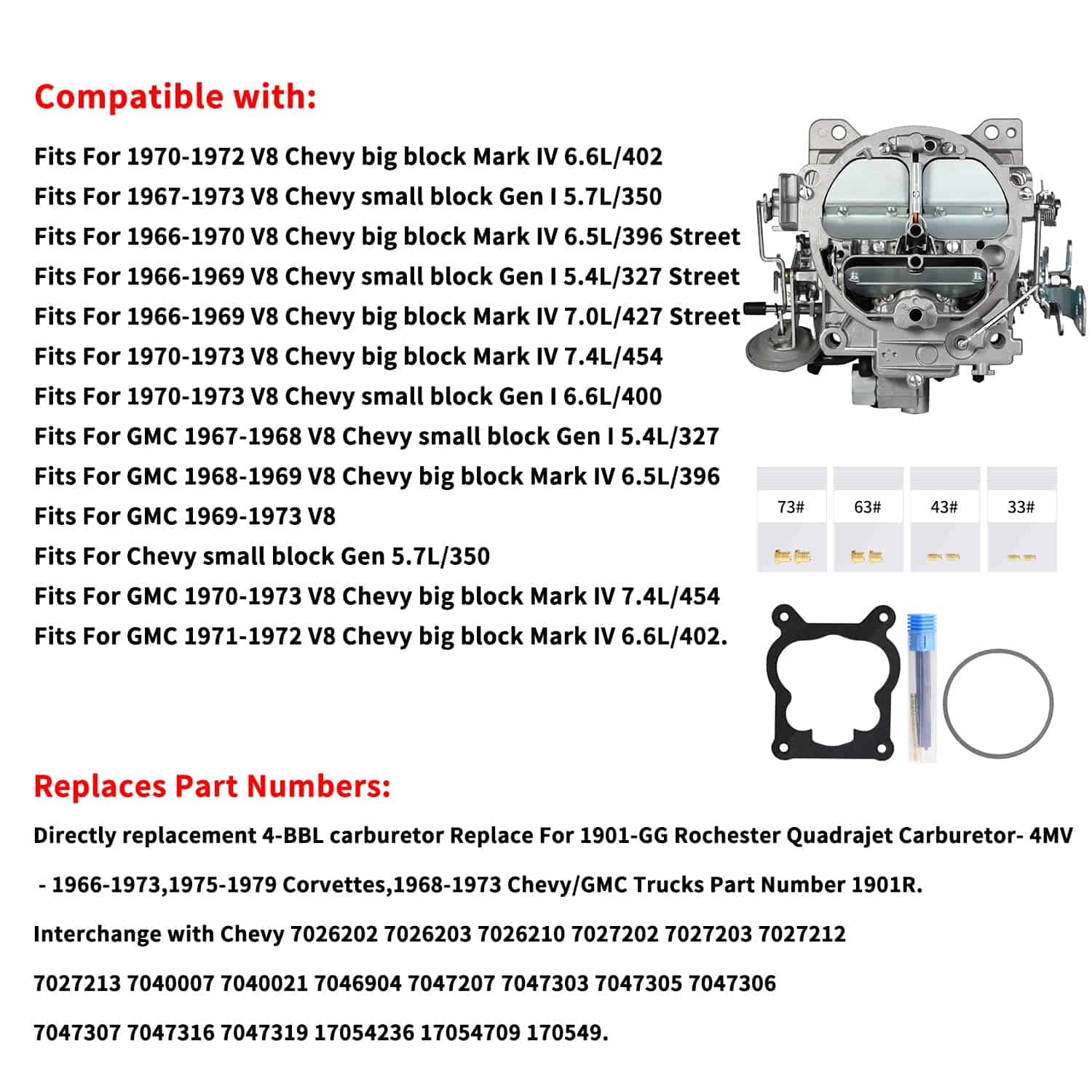 Se adapta a cualquier múltiple de admisión Quadrajet/Spread bore estilo GM