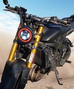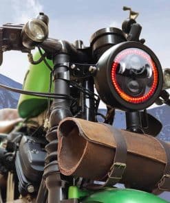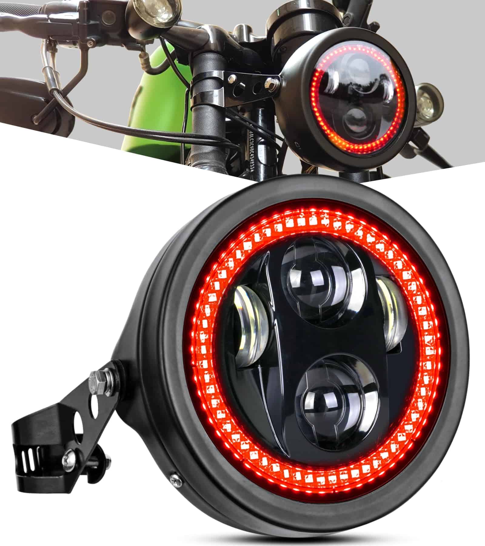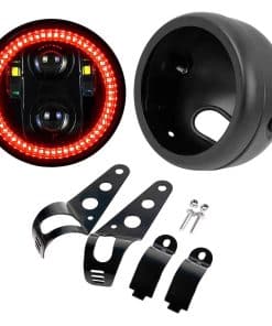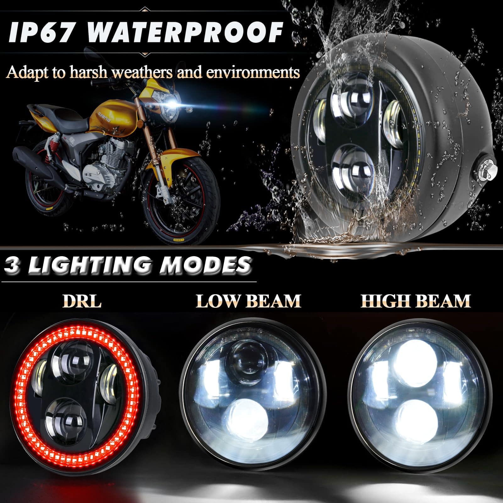 1. Material Duradero: Carcasa de Faro para Motocicleta Negra con Faro LED de 5-3/4″ fabricada con chips LED de alta calidad para una mayor luminosidad que los faros halógenos, aleación de aluminio premium para una rápida disipación del calor y lente de policarbonato resistente a los arañazos, a la corrosión y al óxido.