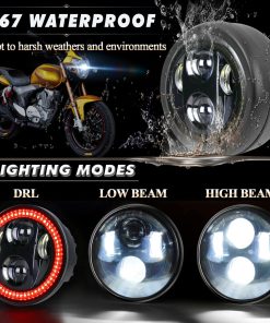 2. Atractivo y Práctico: Faro LED con Halo Rojo DRL para Motocicleta le dará a tu moto un estilo único, iluminación de carretera que ilumina bien los caminos, mantén tu aventura en marcha con un sistema de iluminación mejorado, mejora tu visibilidad nocturna y garantiza la seguridad de los conductores.