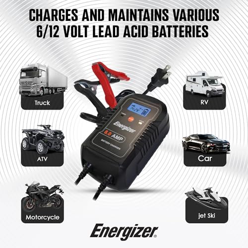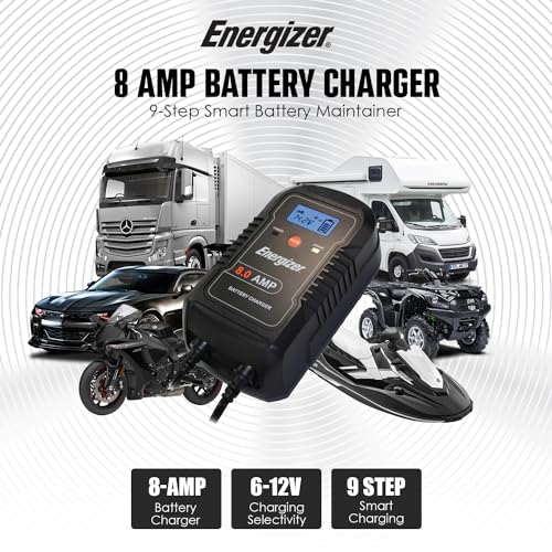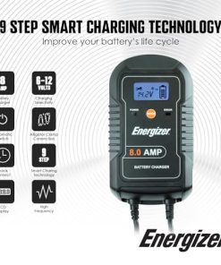 El Cargador Mantenedor de Batería ENERGIZER ENC8A de 8 amperios es un cargador de batería totalmente automático de 6 voltios / 12 voltios de 8 amperios para aplicaciones de carga premium. Con detección automática de voltaje de 6 voltios / 12 voltios, este cargador puede hacer 2 amperios para mantenimiento o 4 amperios de carga rápida. La pantalla digital muestra el estado y la medición de voltaje de la batería. Eficiente en energía y respetuoso con el medio ambiente, este cargador y mantenedor de batería prolongará el ciclo de vida de las baterías de tu RV, bote o auto.