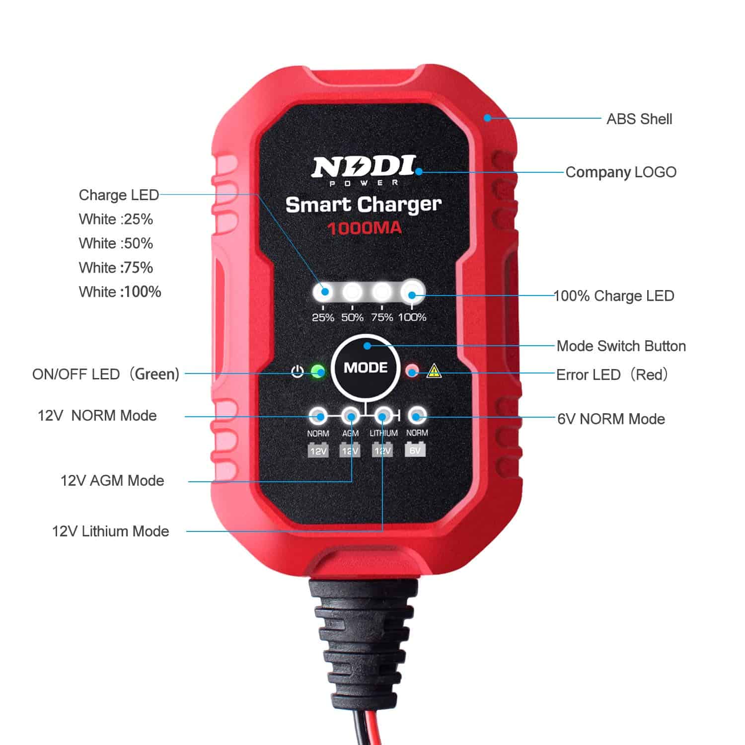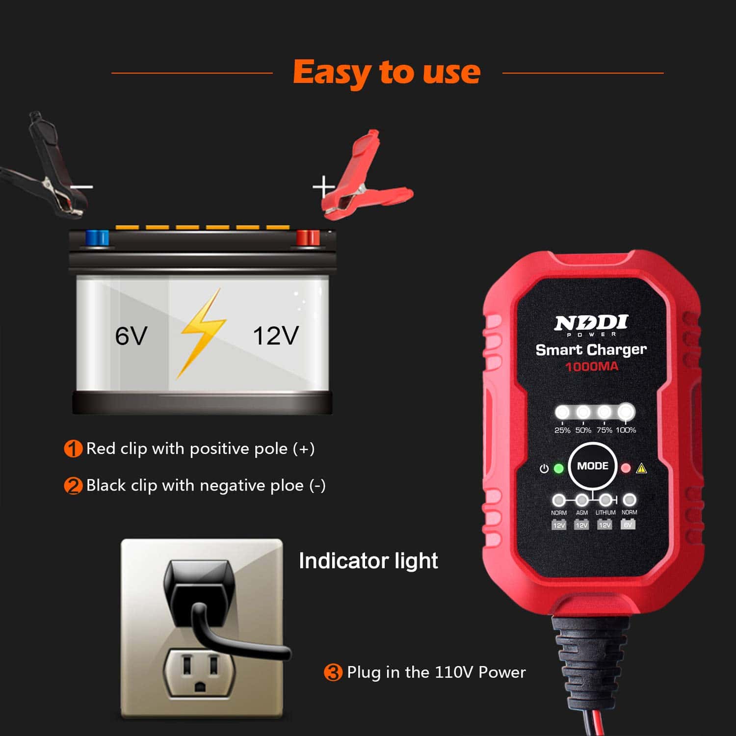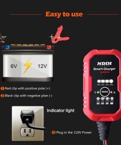 4. Fácil de Usar: El cargador lento NDDI POWER cuenta con conectores de anillo o cocodrilo desmontables, carga y mantiene su batería donde quiera que vaya; El programa controlado por microprocesador monitoreará todo el progreso de carga y cambiará automáticamente al modo flotante cuando la batería esté llena.