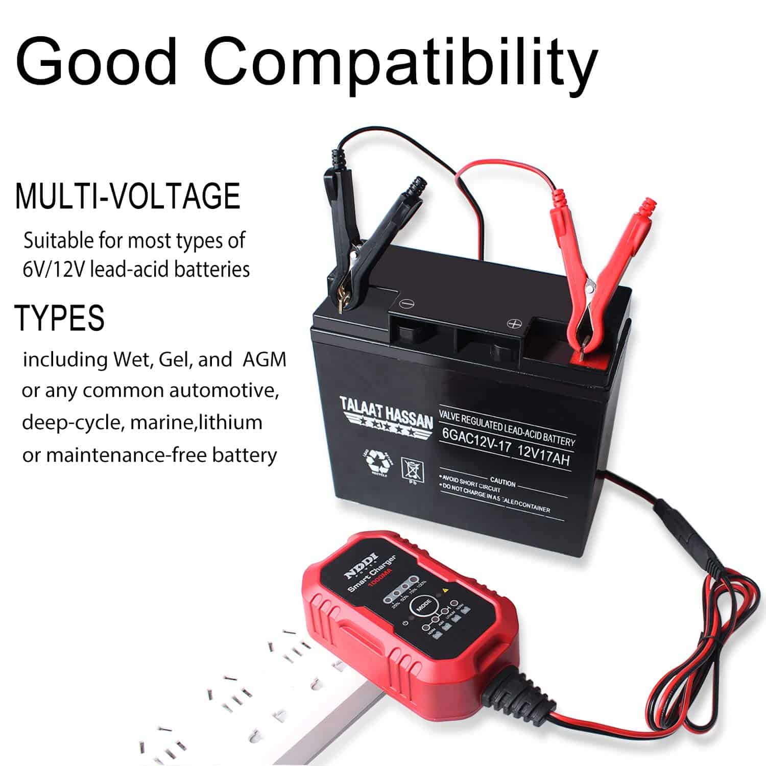 1. Buena Compatibilidad: Cargador de batería inteligente diseñado para baterías de plomo-ácido de 6 y 12 voltios para automóviles, marinos y de ciclo profundo, incluidas baterías inundadas, de gel, AGM y sin mantenimiento, además de baterías de iones de litio.