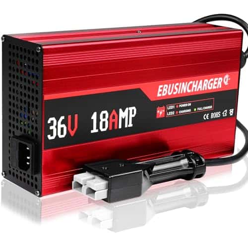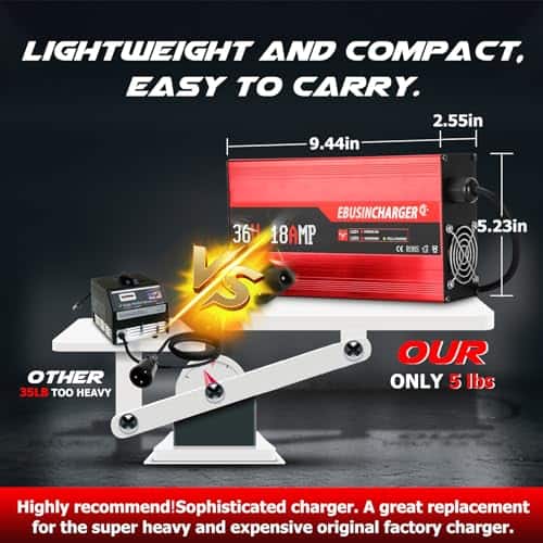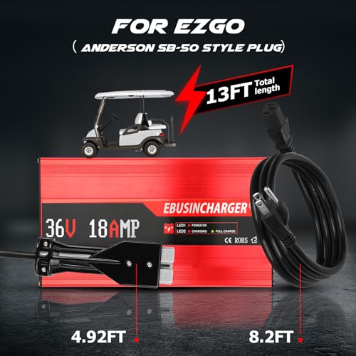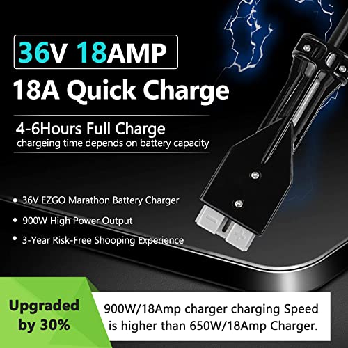 Cargador de batería EZGO Marathon de 18 AMP para carritos de golf de 36 voltios. Cuenta con enchufe estilo Anderson SB-50. Carga rápida de 900W en 4-6 horas, 3-4 veces más rápido que un cargador de 5 amperios. Liviano y fácil de usar, con indicador de carga inteligente y garantía de 36 meses. ¡Haz que tu experiencia de compra sea libre de riesgos durante 3 años!