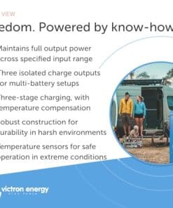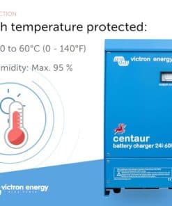 La gama de cargadores de baterías Victron Energy Centaur cuenta con una entrada de auto-rango que cubre 90-265VAC 50/60Hz, por lo que se pueden usar en cualquier parte del mundo. Crucialmente, y a diferencia de muchos otros productos que afirman tener una entrada universal, la gama Victron Energy Centaur mantendrá toda la potencia de salida dentro de todo el rango especificado. Otras características incluyen una característica de carga completamente automática de tres etapas que garantiza que las baterías estén siempre completamente cargadas y tres salidas de carga aisladas para configuraciones de varias baterías que se adapten a la mayoría de las instalaciones típicas. La gama abarca modelos de 12V y 24V de 16A a 100A.