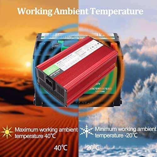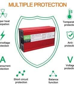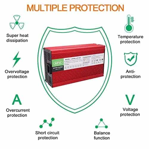 Este cargador de batería de 48 voltios y 15 amperios es perfecto para carritos de golf Yamaha G29 y Drive 2 de 48V. Con un conector DC Yamaha G29 plug por defecto, este cargador cuenta con una entrada de CA de 100~120Vca y 50~60Hz, y una salida de CC de 48 Voltios / 15 Amperios. Viene con un cable de alimentación estándar de EE. UU. de 9.8 pies para mayor comodidad. El cargador utiliza un modo de carga inteligente de tres etapas: Corriente constante, Voltaje constante y Carga flotante para garantizar que la batería esté completamente cargada. Su carcasa de aluminio es hermosa y duradera, y está diseñada con un ventilador de enfriamiento para una mejor disipación del calor durante la carga, lo que garantiza la seguridad y una vida útil más larga. Con un indicador LED que muestra luz roja cuando está cargando y luz verde cuando está completa, este cargador te permite saber en qué estado se encuentra la carga en todo momento. Además, cuenta con protección contra sobretensión, protección contra sobrecorriente, protección contra cortocircuitos y protección contra inversión para una mayor seguridad y tranquilidad. No te preocupes por cuándo apagar el cargador, ya que se detendrá automáticamente la carga cuando la batería esté completamente cargada.