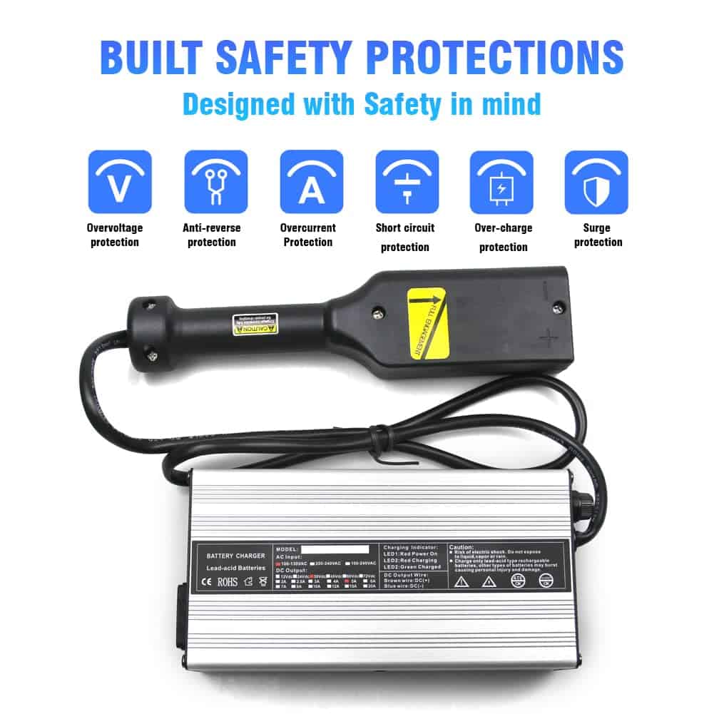 El cargador de batería de carrito de golf JFX 36V 5A es ideal para cargar baterías de 36V en carritos de golf EZ-GO EZGO Medalist. Con una entrada de 100-120V AC y una salida de 36V DC y 5A, este cargador es compatible con el tipo de conexión D-Plug. Su cáscara de aluminio le proporciona una apariencia hermosa y una estructura resistente y duradera. Además, ofrece una carga totalmente automática con bloqueo de corriente y voltaje de alta precisión para garantizar una carga completa sin riesgo de sobrecarga. El cargador también cuenta con múltiples funciones de protección, como protección contra sobrecarga, protección contra conexión inversa, protección contra cortocircuitos, protección contra sobrecorriente, protección contra sobretensión y protección contra sobretensiones. Compre con confianza sabiendo que si tiene alguna pregunta, nuestro equipo de atención al cliente estará encantado de ayudarle.