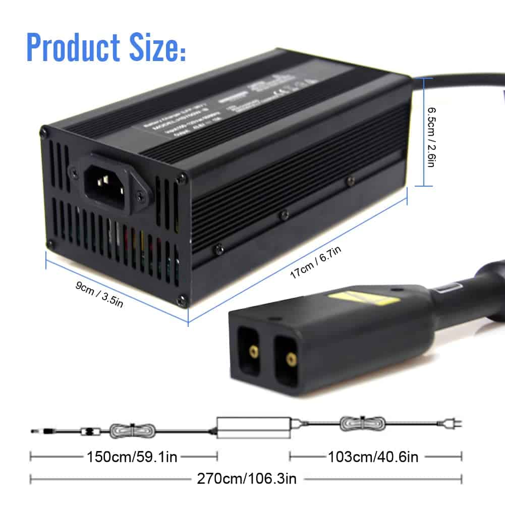 Recomendado Para: CUALQUIER CARRO DE GOLF EZGO DE 36 VOLT (o cualquier otro carro con un receptáculo que se ajuste al D-Plug, un cabezal de enchufe de forma rectangular con un lado curvo que contiene dos clavijas circulares). Año de fabricación E-Z-GO: 1995, 1996, 1997, 1998, 1999, 2000, 2001, 2002, 2003, 2004, 2005, 2006, 2007, 2008, 2009 Modelos E-Z-GO: TXT, TXTE, TXT PDS, Freedom TXT, Medalist, Shuttle Reemplaza: PowerWise, PowerWise II, Lestronic II, Lestermatic, E-Series Delta Q, Schumacher, Eagle Dual Pro, DPI, Accu sense, Accupower, LVS, Thunderbull, Stanley, Schauer, Clarke, Quick Charge, MadJax Reemplaza : 19300-88, 1930088, 28115-G04, 20484, 5-002AP, CP602718, 25970-A88, 28080, 28115GO4, 28115G04, 602718, 28115-G01, 28115G01, 14390, 915