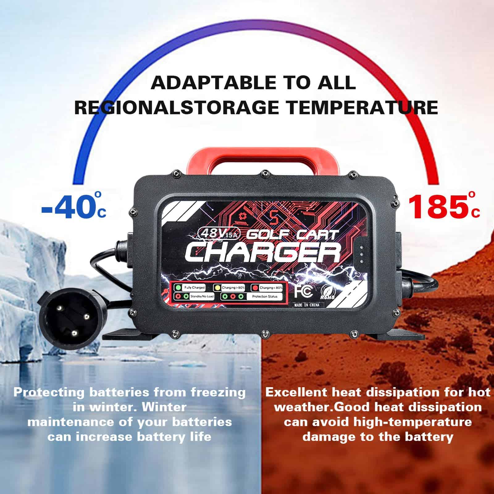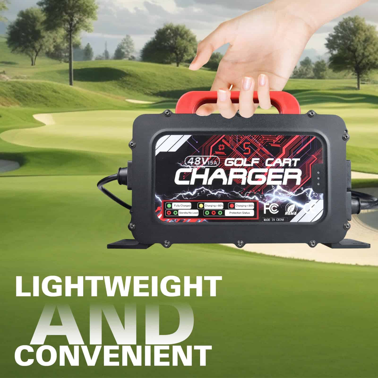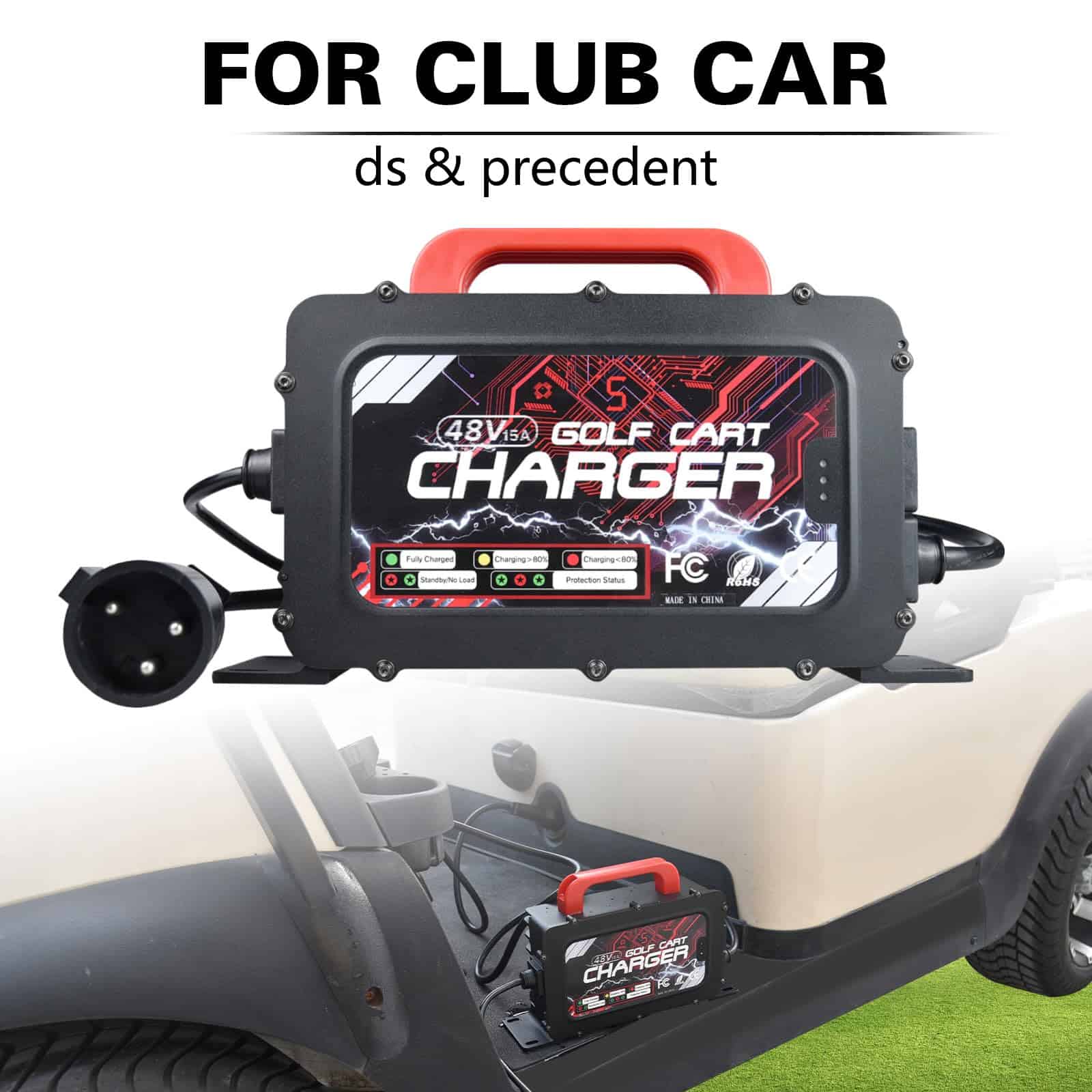 El cargador de batería de carrito de golf Shu-Ran tiene una salida mejorada de 48V/15A/900W, que puede proporcionar carga rápida y eficiente para la batería de su carrito de golf Club Car. Ampliamente utilizado en todos los carritos de golf Club Car fabricados desde 1995 hasta la actualidad. Incluye cable de derivación de la computadora a bordo (OBC), específicamente compatible con modelos Club Car DS 1995-2010 y Club Car Precedent 2004-2014.