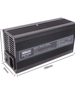 Especificación: Producto: Cargador de 48V 6A Modelo: WA360-4806B-RXV Dimensiones: 180x90x63mm Color/Material: Negro/Carcasa de Aluminio Conector de CC: Conector RXV de 3 Puntas Apto para tipo de batería: Batería de Plomo de 48V Entrada de CA: 100~120Vac, 50~60Hz Voltaje de Salida: 48 Voltios (55.2Volt) Corriente de Salida: 6 Amperios Voltaje Flotante: 58.8Volt Protección de la Batería: SCP, OVP, OCP, OTP Modo de Carga: Corriente Constante – Voltaje Constante – Carga Flotante: Carga Inteligente de Tres Etapas Eficiencia de Carga: 90% Temperatura de Funcionamiento: -5 ~ +40 Temperatura de Almacenamiento: -40 ~ +70 Cable de alimentación de CA, conector de CC se pueden personalizar. Instrucciones de Operación: 1. Antes de cargar, conecte primero el terminal de CC a la batería y luego conecte el terminal de CA. 2. Después de completar la carga, desconecte primero el terminal de CA y luego desconecte el terminal de CC. 3. No cargue o después de completar la carga, asegúrese de desconectar el terminal de CC y el terminal de CA. Indicador LED: LED 1 rojo: Encendido. LED 2 rojo: Batería cargándose. LED 2 parpadeante: La batería se cargará completamente pronto. LED 2 verde: La batería se ha cargado completamente. Paquete: 1 Cargador de 48V 6A 1 Cable de alimentación estándar de EE. UU. 1 Manual de Operación 2 Fusibles para reemplazo