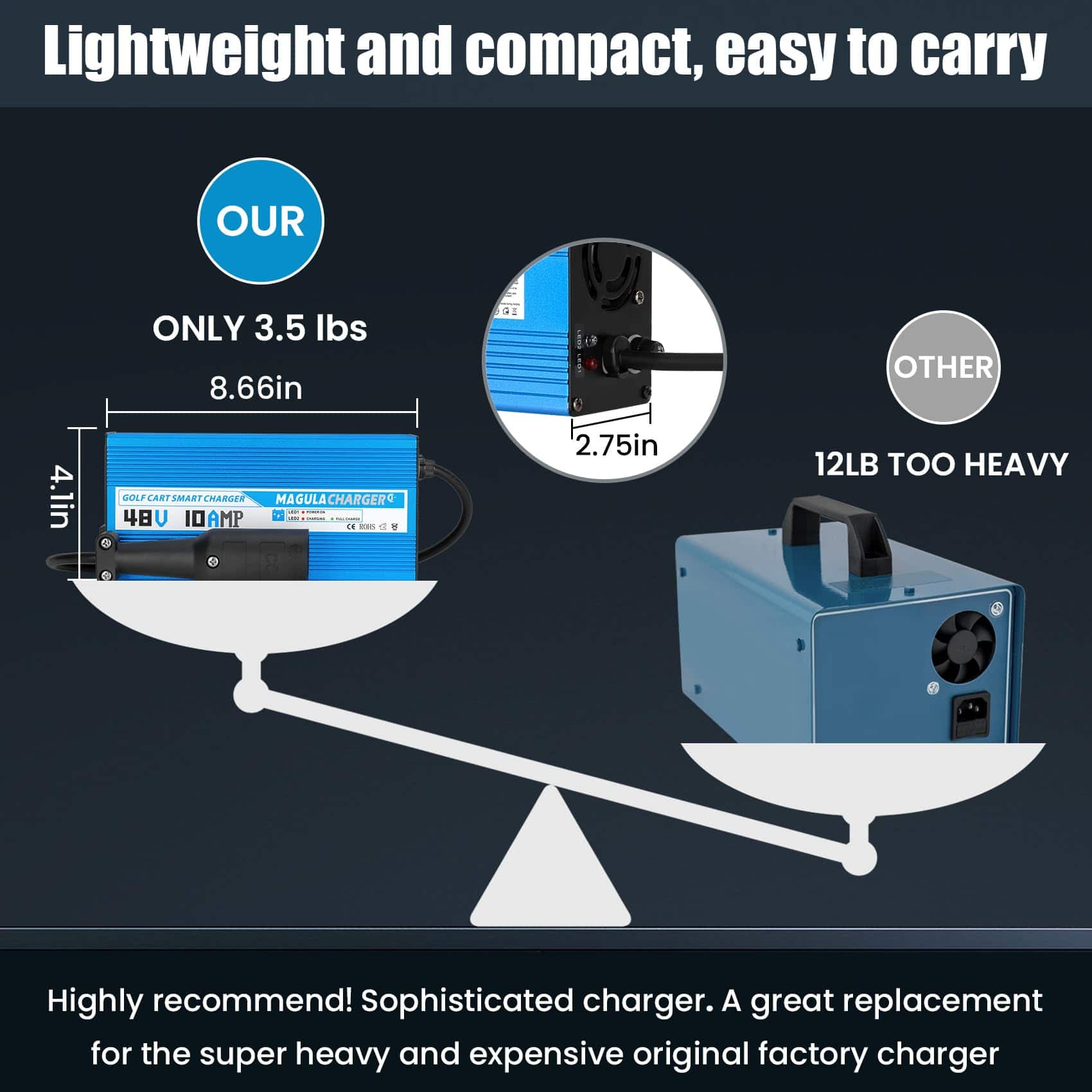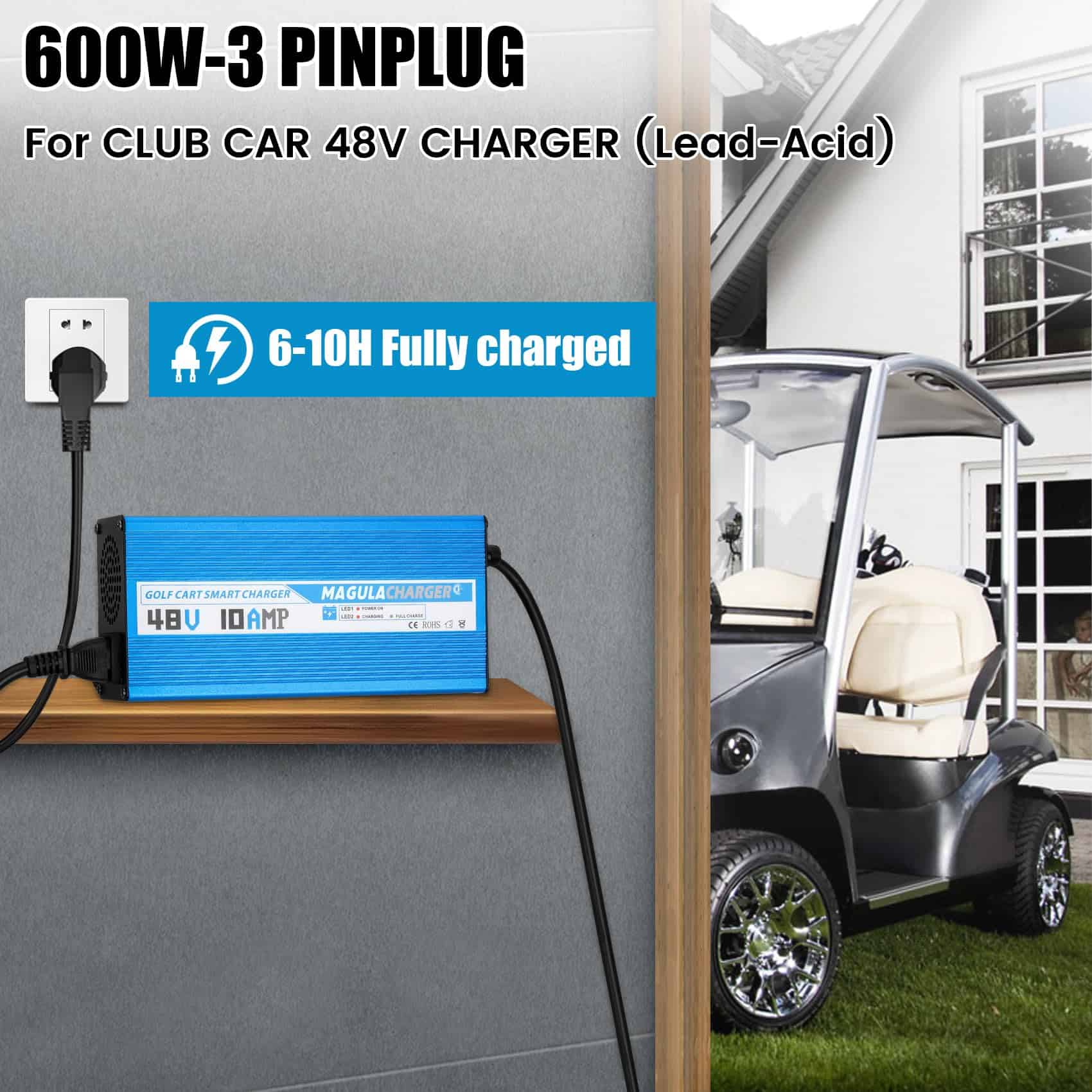10AMp 48V Golf Cart Battery Charger for Club Car DS&Precedent, Trickle Charge 6-10 Hours Full Charge,3 Pin with Round Plug Replace for Club Car Golf Cart 48 Volt Golf Cart Battery,5Lbs