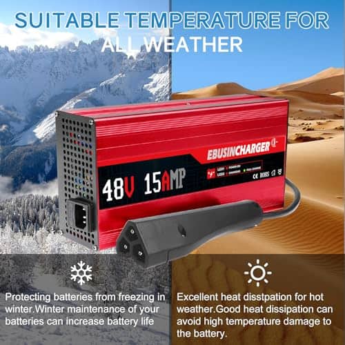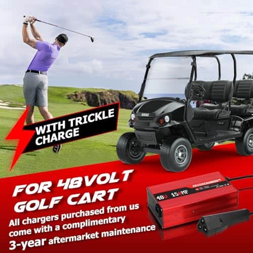 Una vez que la batería esté completamente cargada, el cargador de carrito de golf de 48V se apagará y entrará en modo de carga lenta, y la luz verde se encenderá. En este modo, si el nivel de la batería cae por debajo de cierto nivel, el cargador se encenderá nuevamente para cargar. El cargador de alta calidad certificado es el perfecto ayudante para su carrito de golf. ¡Ofrecemos con orgullo 3 meses de devoluciones gratuitas y 36 meses de posventa sin defectos del fabricante en nuestros productos!