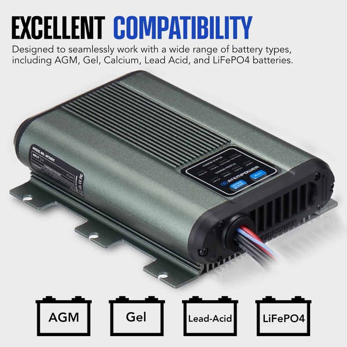 2. Compatibilidad y Eficiencia sin Parangón: Nuestro cargador está diseñado para funcionar perfectamente con una amplia gama de baterías, desde AGM, Gel, Calcio, Ácido de Plomo, hasta baterías LiFePO4. Con su compatibilidad con alternadores, va más allá de cumplir tus expectativas. Eleva tu experiencia de carga con nuestro cargador de batería de CC a CC donde la compatibilidad se encuentra con la eficiencia en una perfecta sinergia.