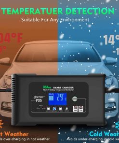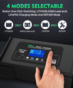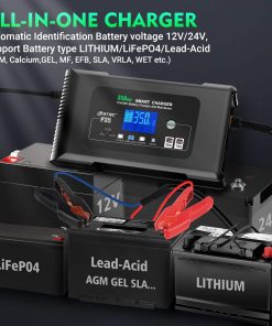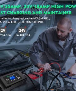 Cargador de batería de coche iSunergy, 35 Amp Automotive 12V/35A & 24V/18A Lead-Acid(AGM/Gel/SLA), Cargador de batería de litio LiFePO4, Cargador de batería de ciclo profundo portátil Trickle Maintainer para automóvil barco cortacésped Este cargador de batería inteligente de iSunergy es la solución perfecta para cargar y mantener tus baterías con eficiencia y seguridad. Con un proceso de carga de 9 etapas, garantiza una carga más rápida y una optimización precisa de la energía de la batería. Reconocimiento automático de baterías de 12/24V, con una corriente máxima de carga de 35A(12V) /18A(24V). Además, cuenta con una función de memoria automática que te permite volver al último modo conectado. Este cargador inteligente es compatible con la carga y mantenimiento de baterías de litio, plomo (AGM, GEL, SLA, inundadas, EFB, etc.) y es adecuado para una amplia variedad de vehículos, como automóviles, barcos, motocicletas, carros de golf, cortadoras de césped, montacargas, tractores, etc. Protección Completa Con una carcasa de ABS retardante de llama y diversas funciones de precaución, este cargador garantiza una carga segura sin riesgos. El voltaje de carga se adapta automáticamente a la temperatura para evitar sobre carga o bajo carga. Además, cuenta con protección de circuitos integrada, sistema anti-chispas, protección de polaridad inversa, protección contra sobre-carga, sobre-voltaje y sobre-calentamiento para una protección completa durante el proceso de carga. Modo de Reparación y Pantalla LCD El modo de reparación te permite reparar y almacenar baterías viejas, inactivas, dañadas, estratificadas y sulfatadas, con un tiempo máximo de reparación de 24 horas. La pantalla LCD muestra el estado de carga y de la batería de forma clara, incluyendo el voltaje, la corriente, la potencia de la batería, la temperatura, etc. para que puedas monitorear el proceso de carga con tranquilidad. Cómpralo con Confianza El paquete incluye el cargador de batería inteligente, cable de alimentación de 3m/118 pulgadas, cable de pinza, manual y 2 terminales de cable. Puedes comprar con confianza sabiendo que nuestros productos están respaldados por un excelente servicio al cliente. Si tienes alguna pregunta sobre nuestro cargador de batería, no dudes en contactarnos para obtener más información.